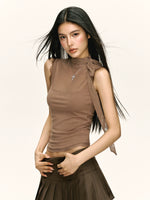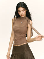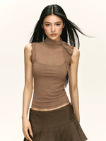 قميص كاميسول بلا أكمام بشبكة ريترو رفيعة