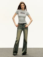 تي شيرت قصير الأكمام بشعار ريترو بقصة ضيقة