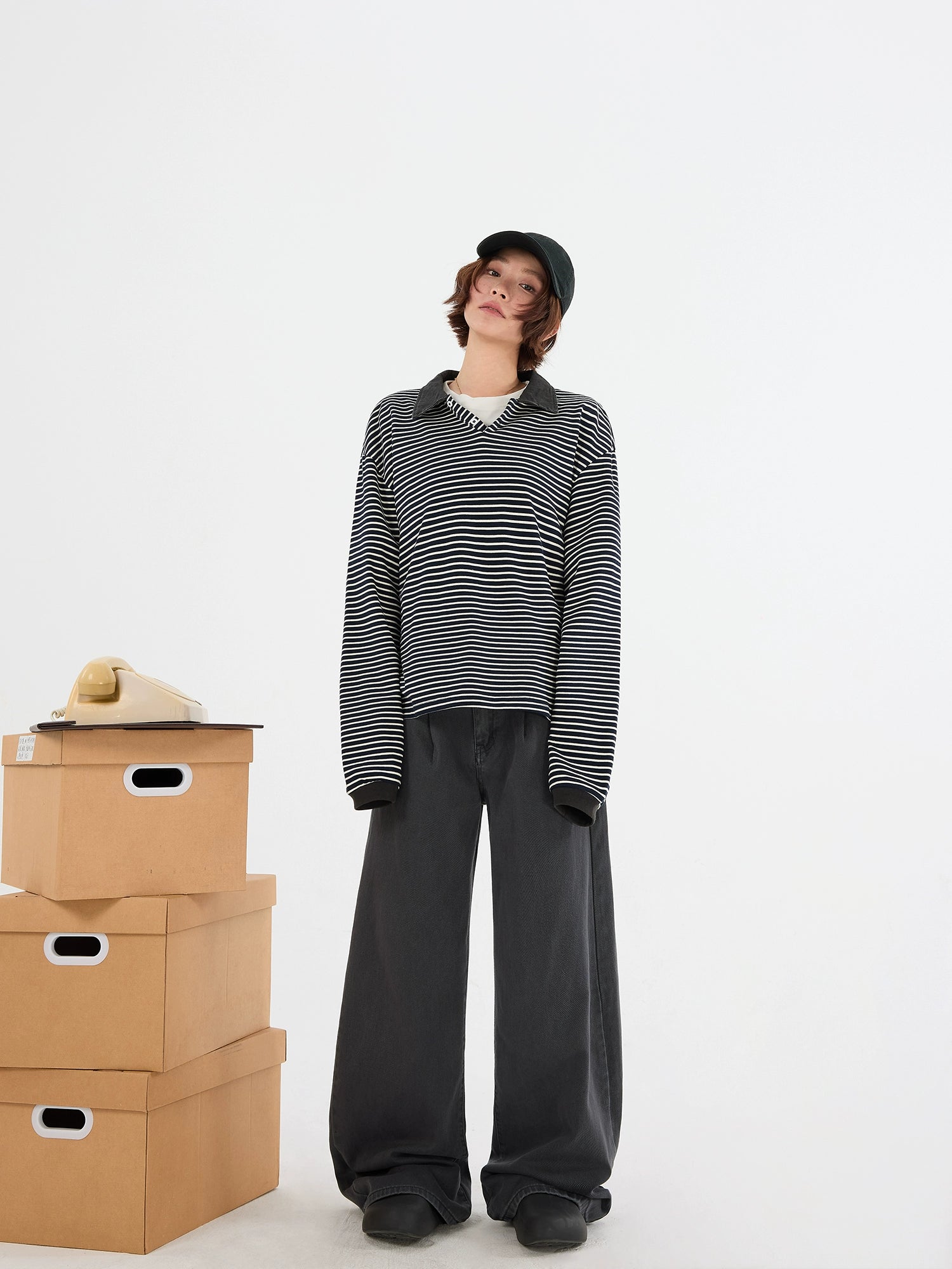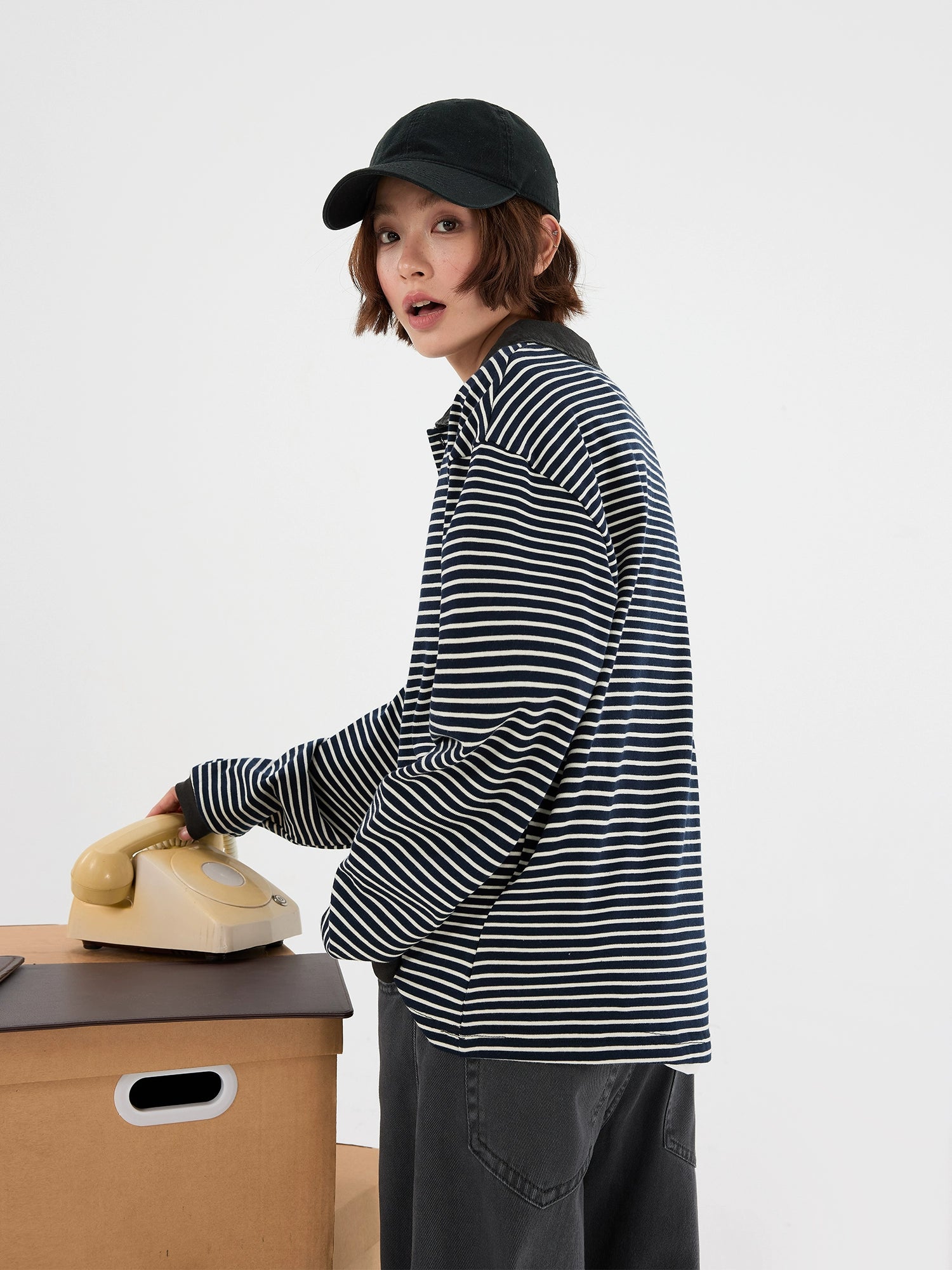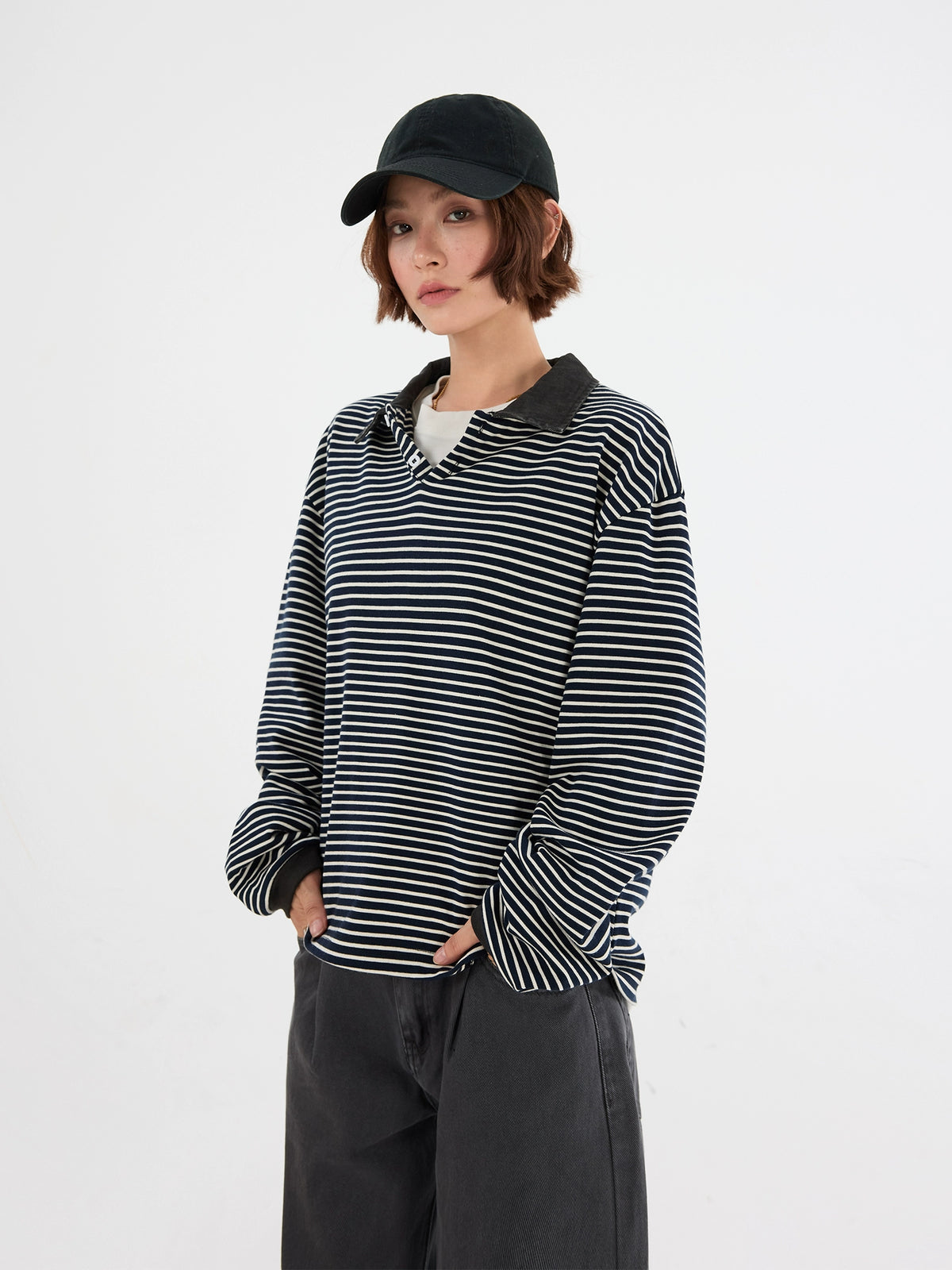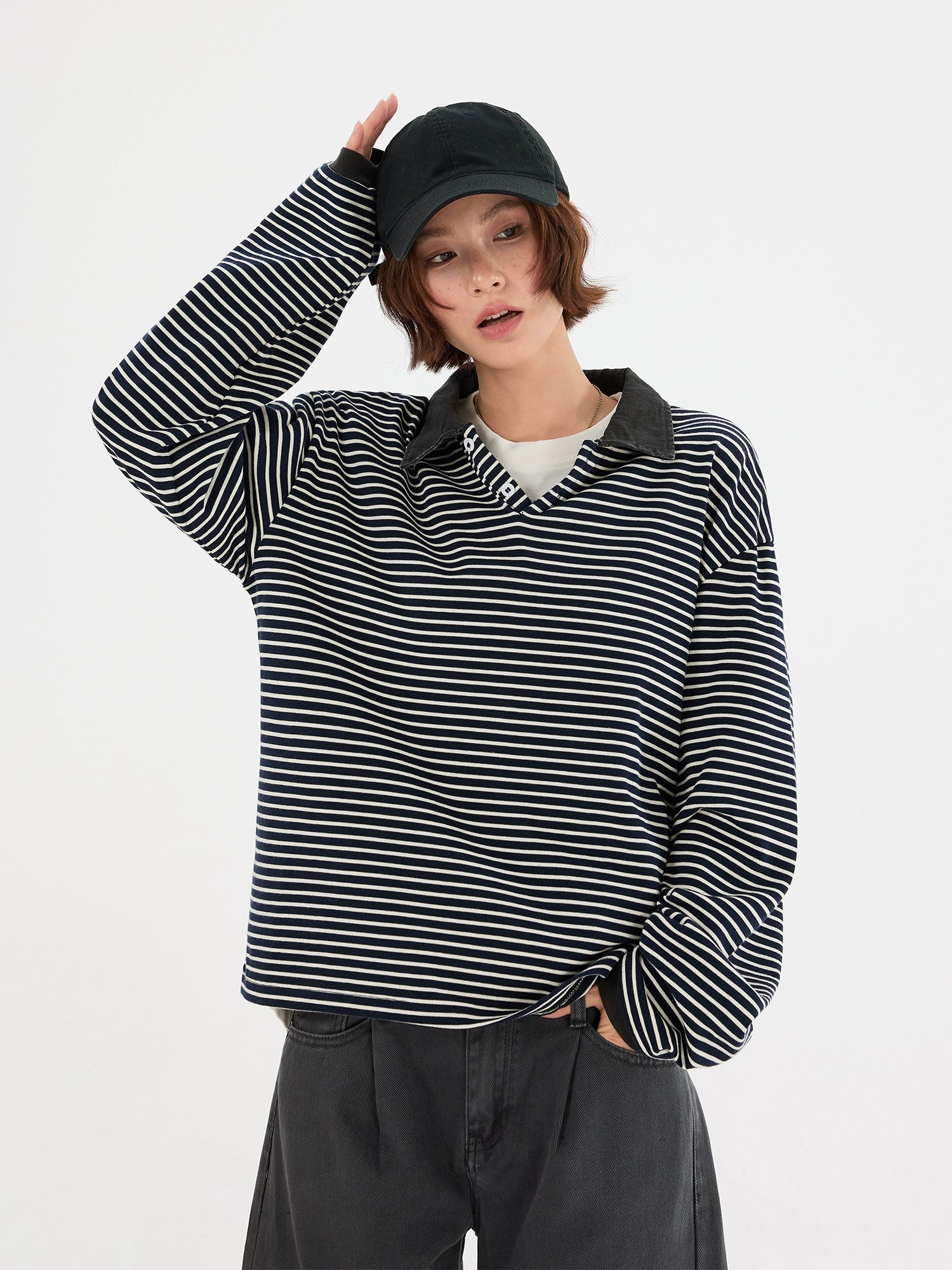 هودي بأكمام طويلة مع ياقة مخططة وممزقة
