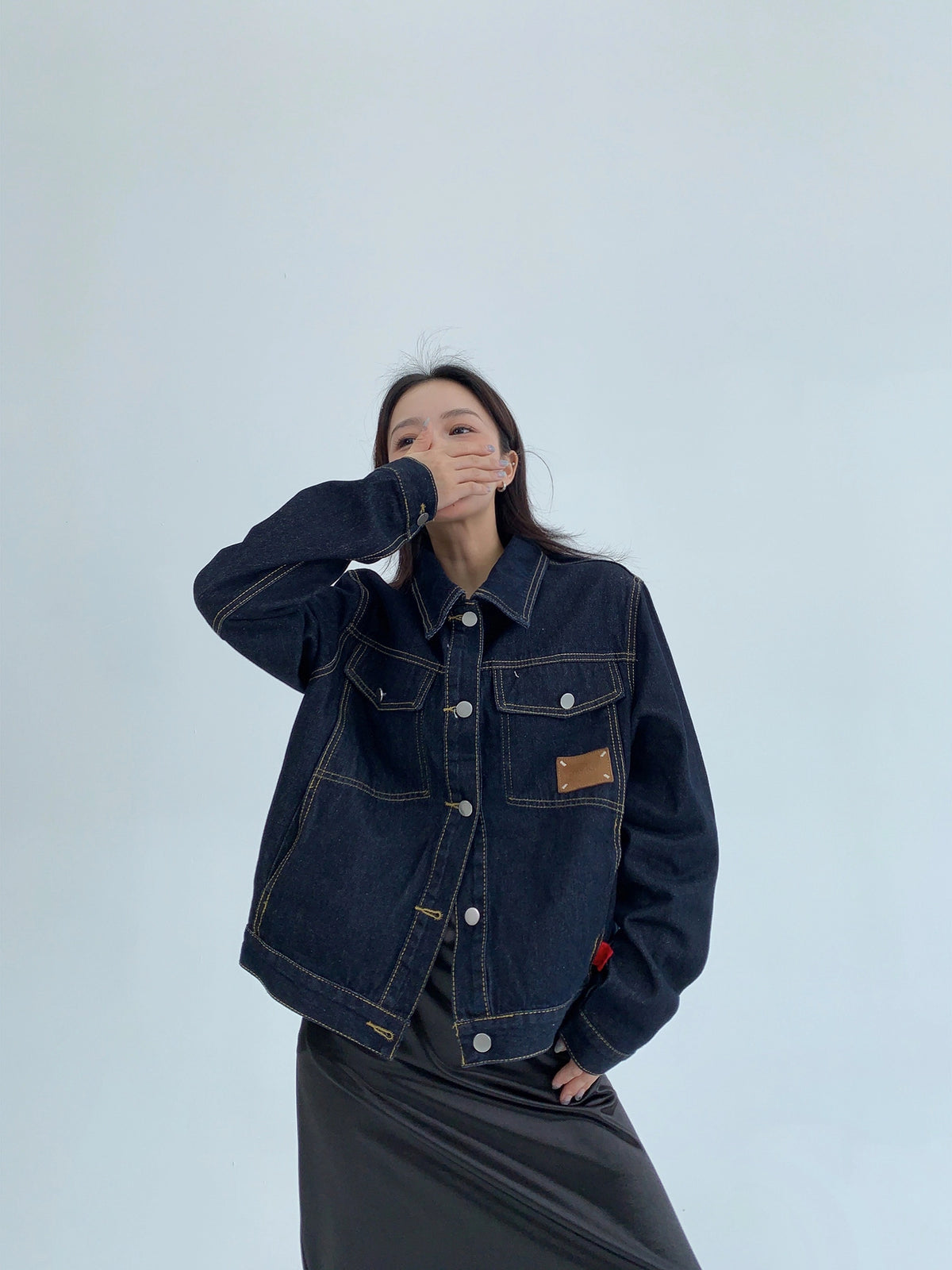 - العملية: غسيل ثقيل وعملية قديمة / عملية خيط ساطعة / ملصق جلد PU مصقول مخصص على صدر الجهة الأمامية / نسخة قصيرة