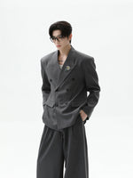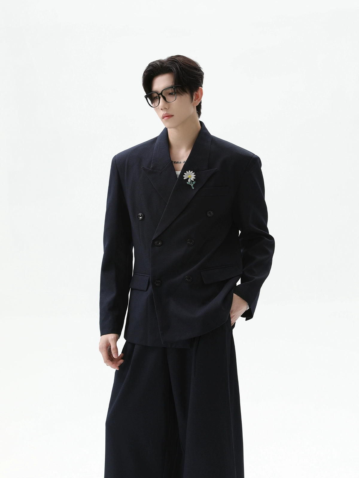 طقم بدلة كاجوال ريترو مع دبوس عباد الشمس