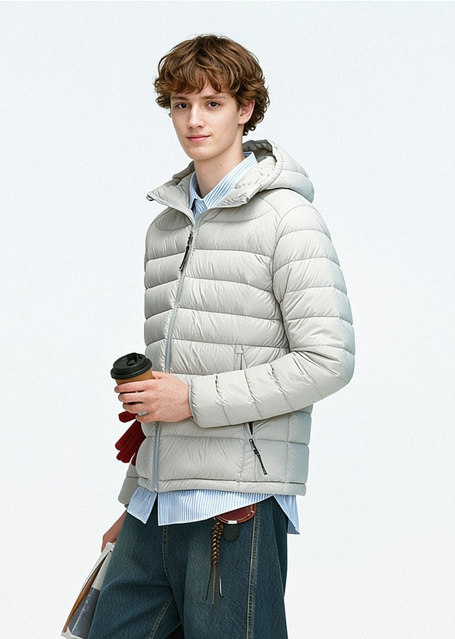 جاكيت داون بوفير مع ق hooded خفيف الوزن