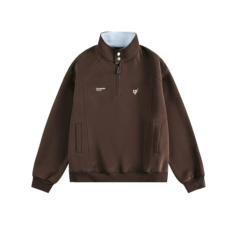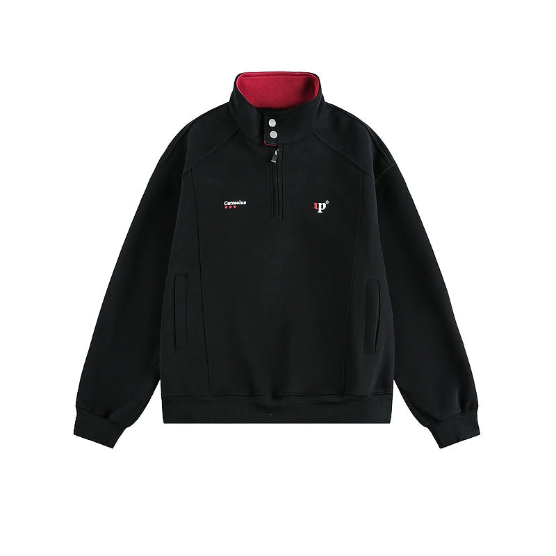 سويت شيرت برقبة قائمة نصف سحاب بتصميم رجعي