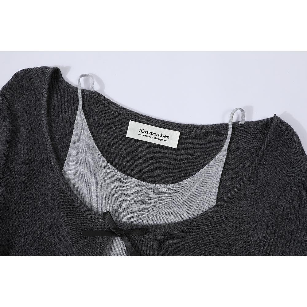 بلوزة محبوكة بأكمام طويلة من قطعتين مع قوس في الأمام