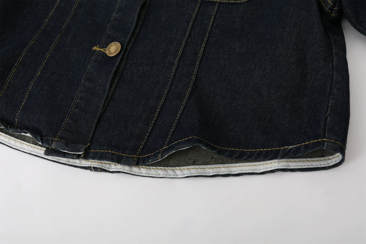 طقم جاكيت دنيم وشورتات عالية الخصر