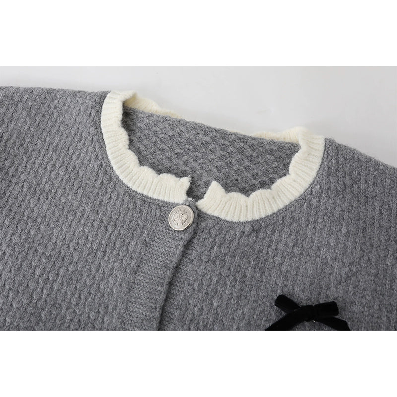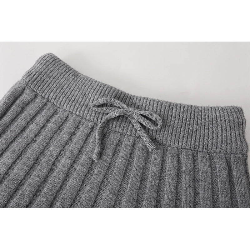 طقم تنورة سترة محبوكة بياقة دانتيل