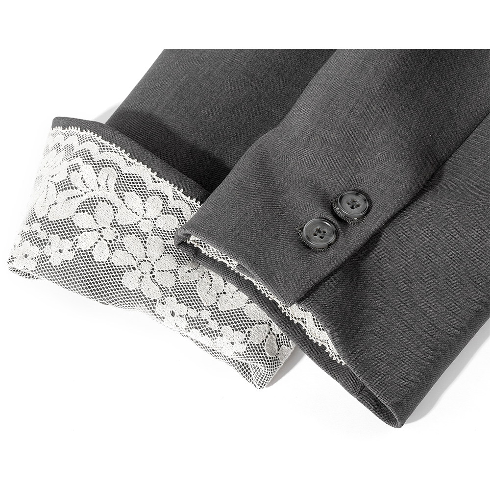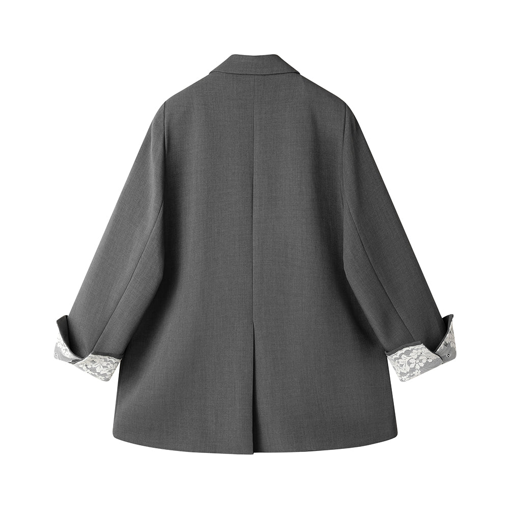 سترة بدلة فضفاضة مزدوجة الصدر بأساور دانتيل