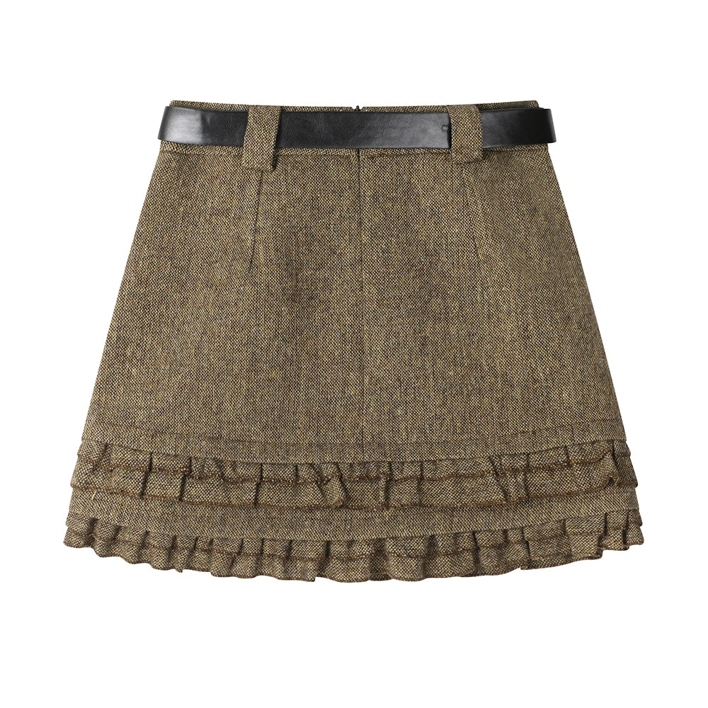 تنورة من الصوف على شكل A مع حواف من الدانتيل