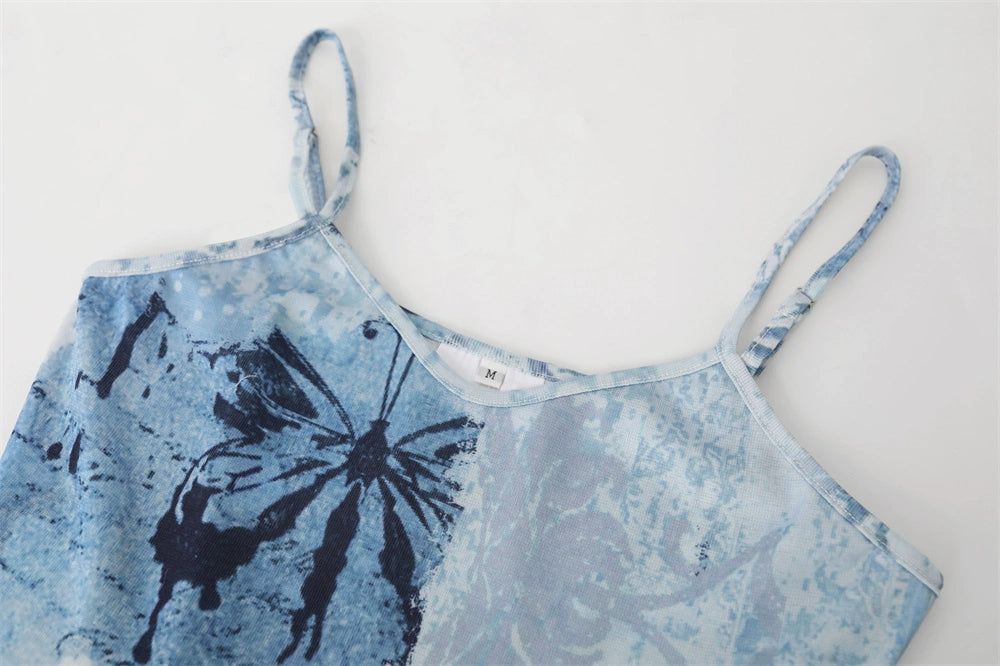 طقم تانك محبوك برقبة على شكل حرف V مع طباعة مرقطة وتفاصيل جرس