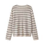 Striped Knit V-Neck Relaxed Sweater