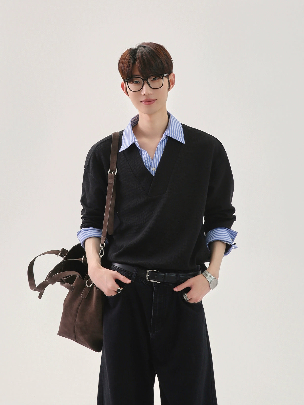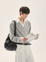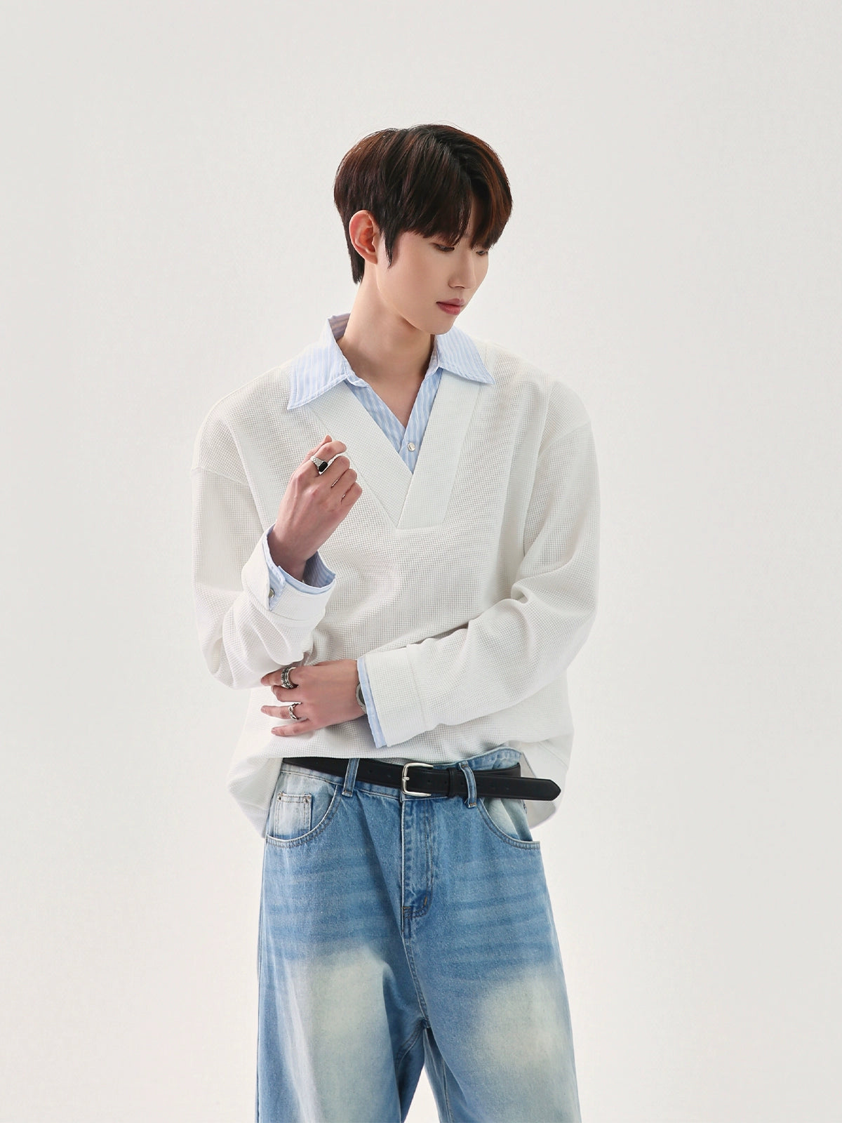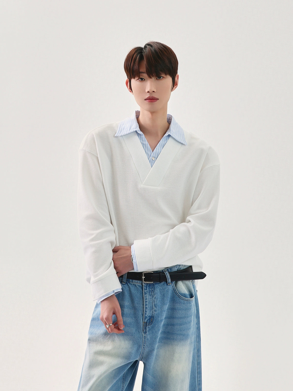سويت شيرت بولو بأكمام طويلة مع ياقة وافل