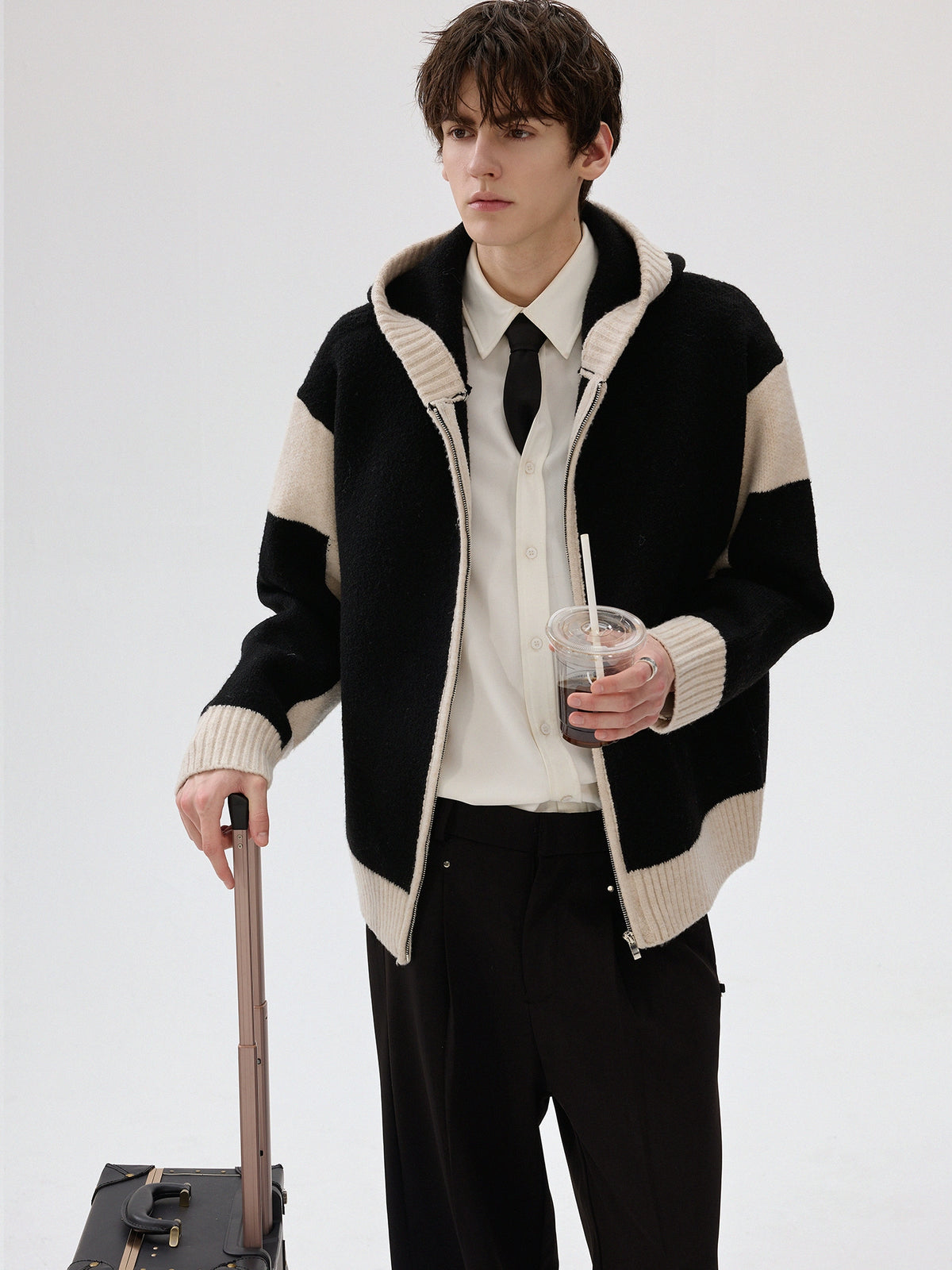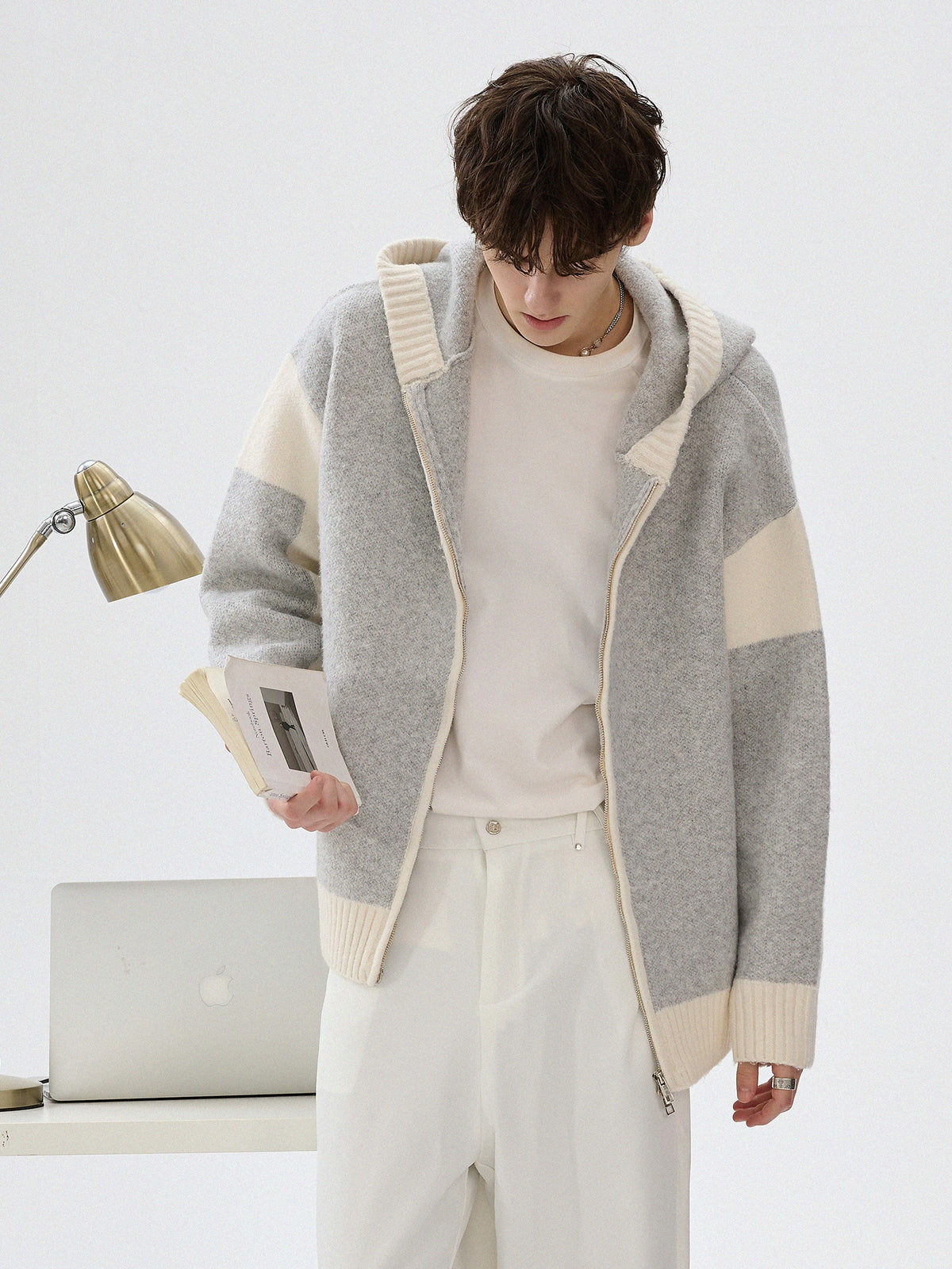 سترة صوفية محبوكة بغطاء رأس من الفرو القطبي
