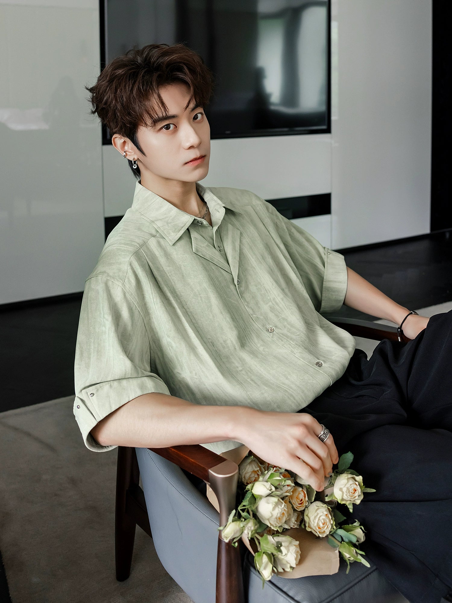 قميص قصير الأكمام ذو طوق مزدوج من قطعتين
