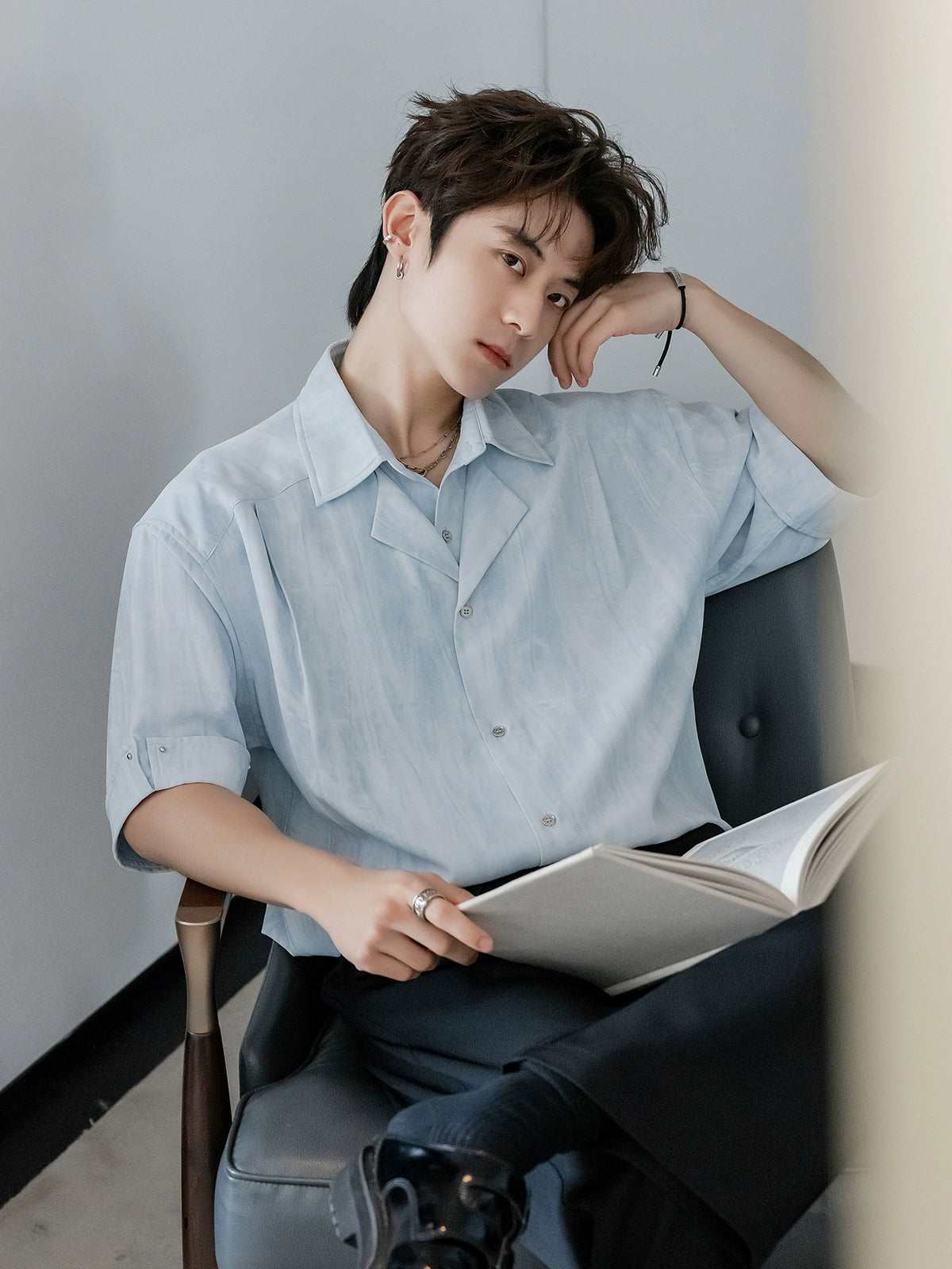 - التصميم: نسخة قميص كلاسيكية مع ياقة صغيرة, هيكل مزيف من قطعتين, ملمس رومانسي, وتصميمات أكمام مطوية. نسيج القماش يقدم جوًا رومانسيًا, مناسب للتنسيق اليومي.