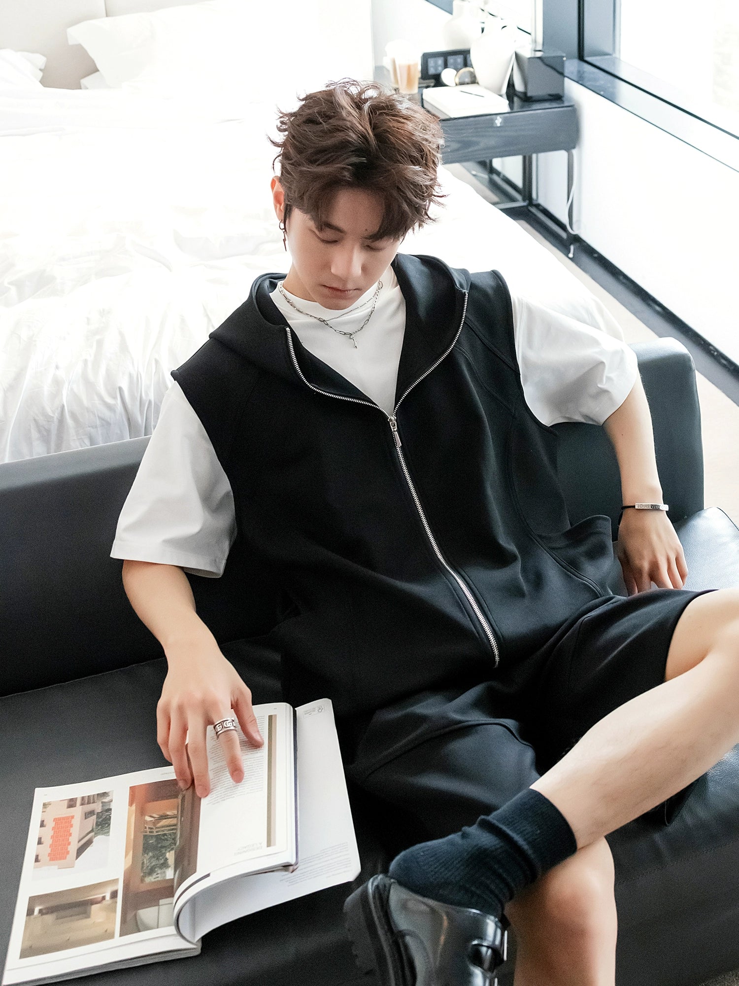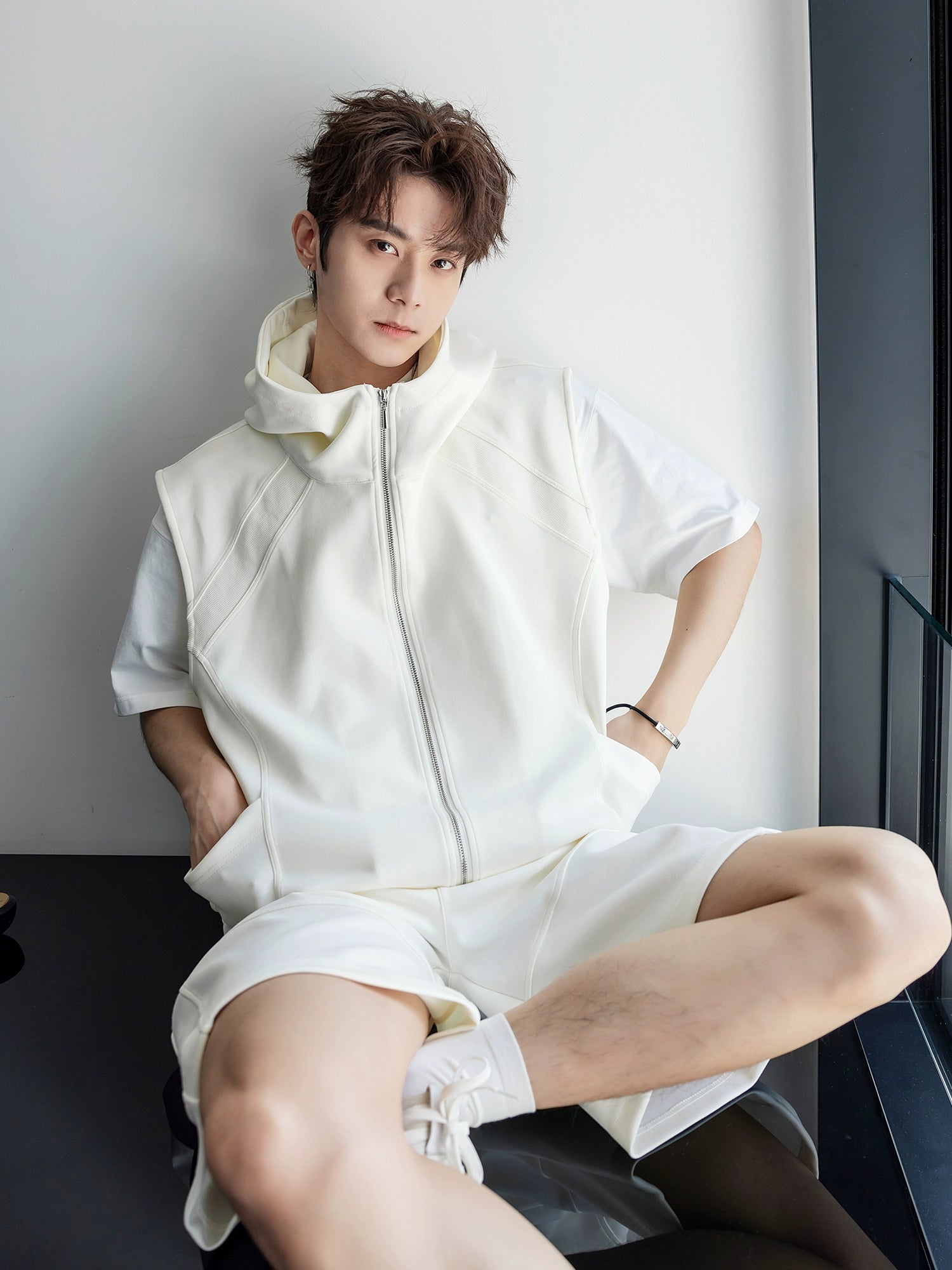 - يتضمن التصميم غطاء برأس مفتوح, حزام مطاطي, وأسلوب قصير لمظهر عصري, غير رسمي, ورياضي حضري.