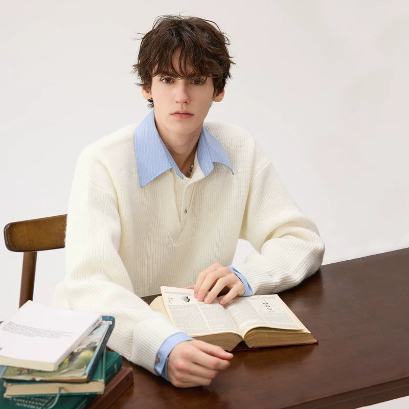 طقم سترة محبوكة على شكل حرف V ذو قطعتين
