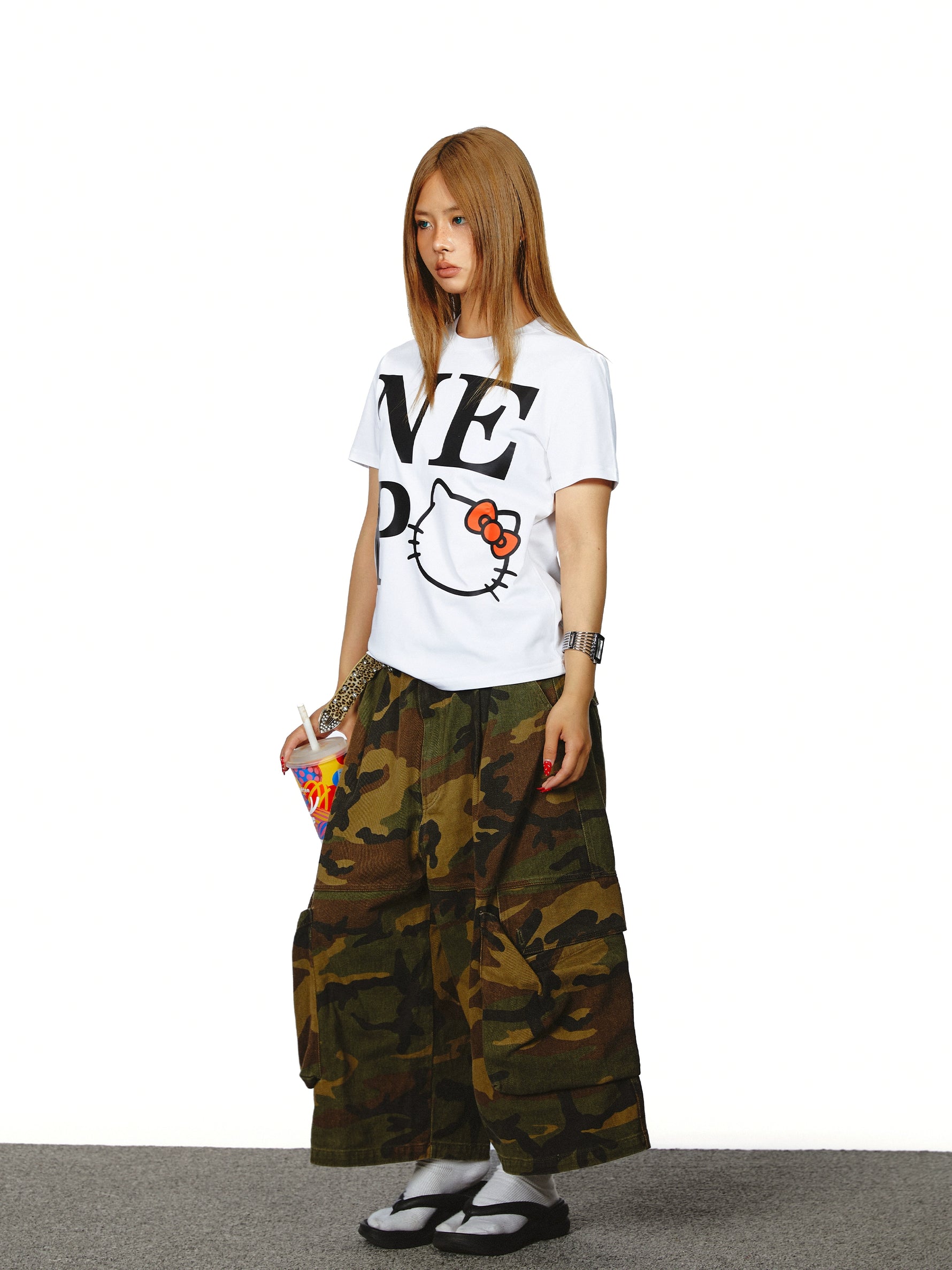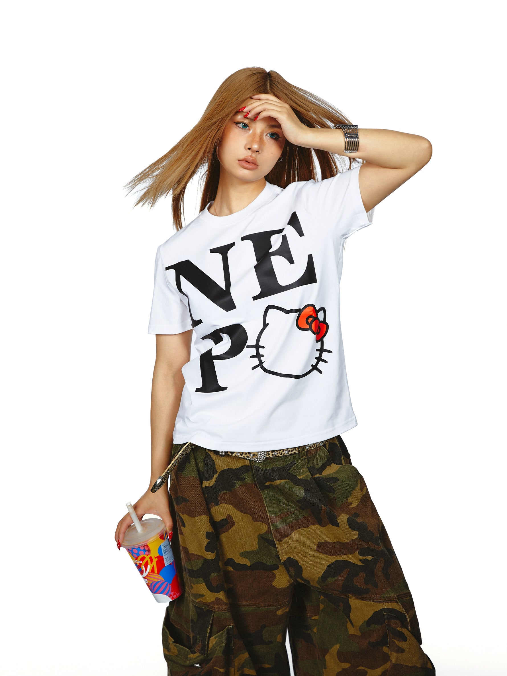 تي شيرت قصير الأكمام بطباعة حرف كرتوني