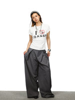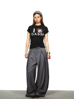 قميص تي شيرت قصير الأكمام ضيق بجرس قطة