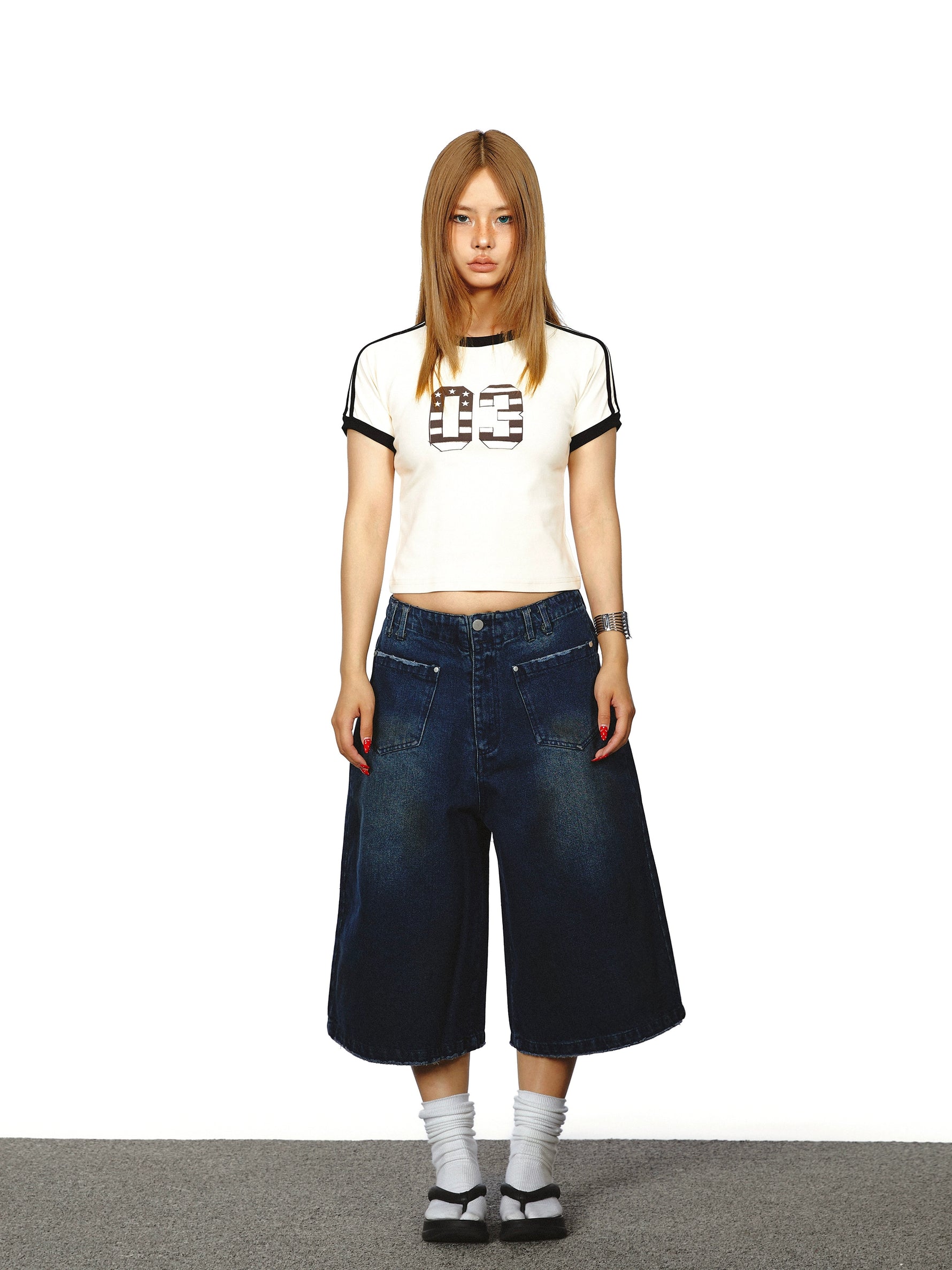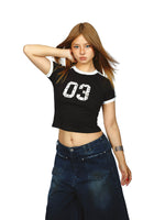 تي شيرت قصير ضيق بتفاصيل خياطة متباينة