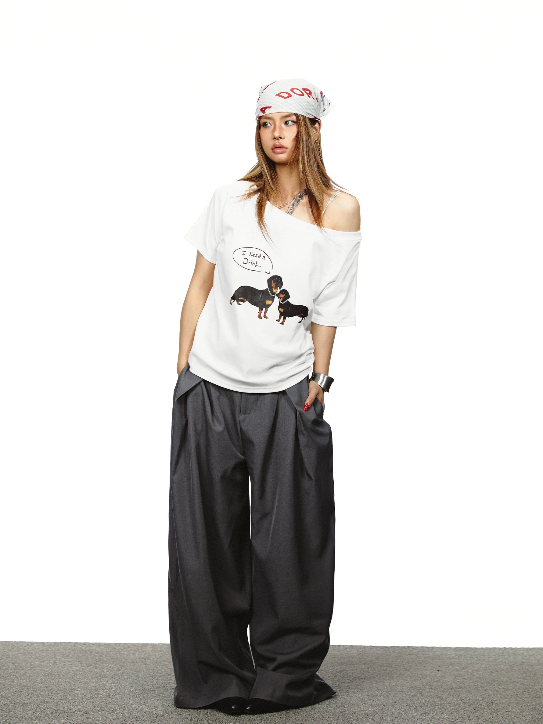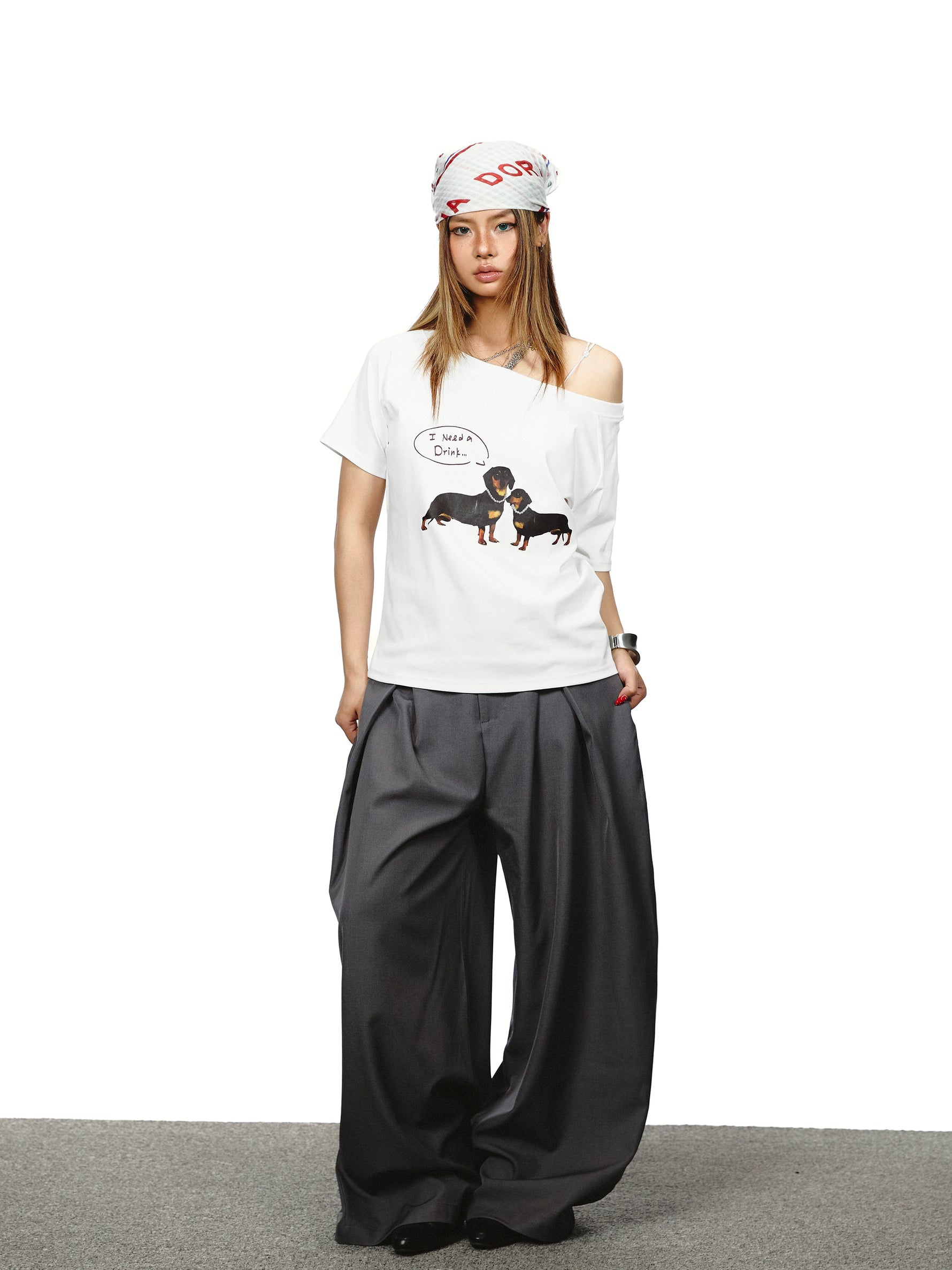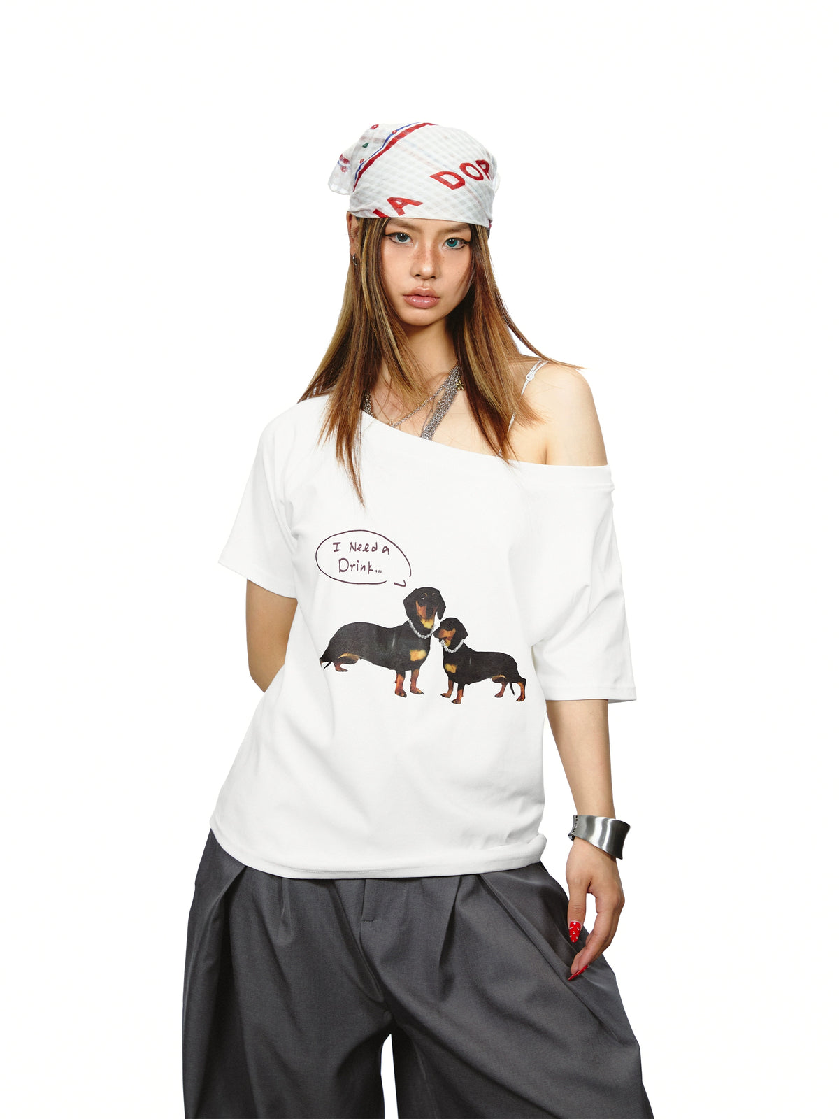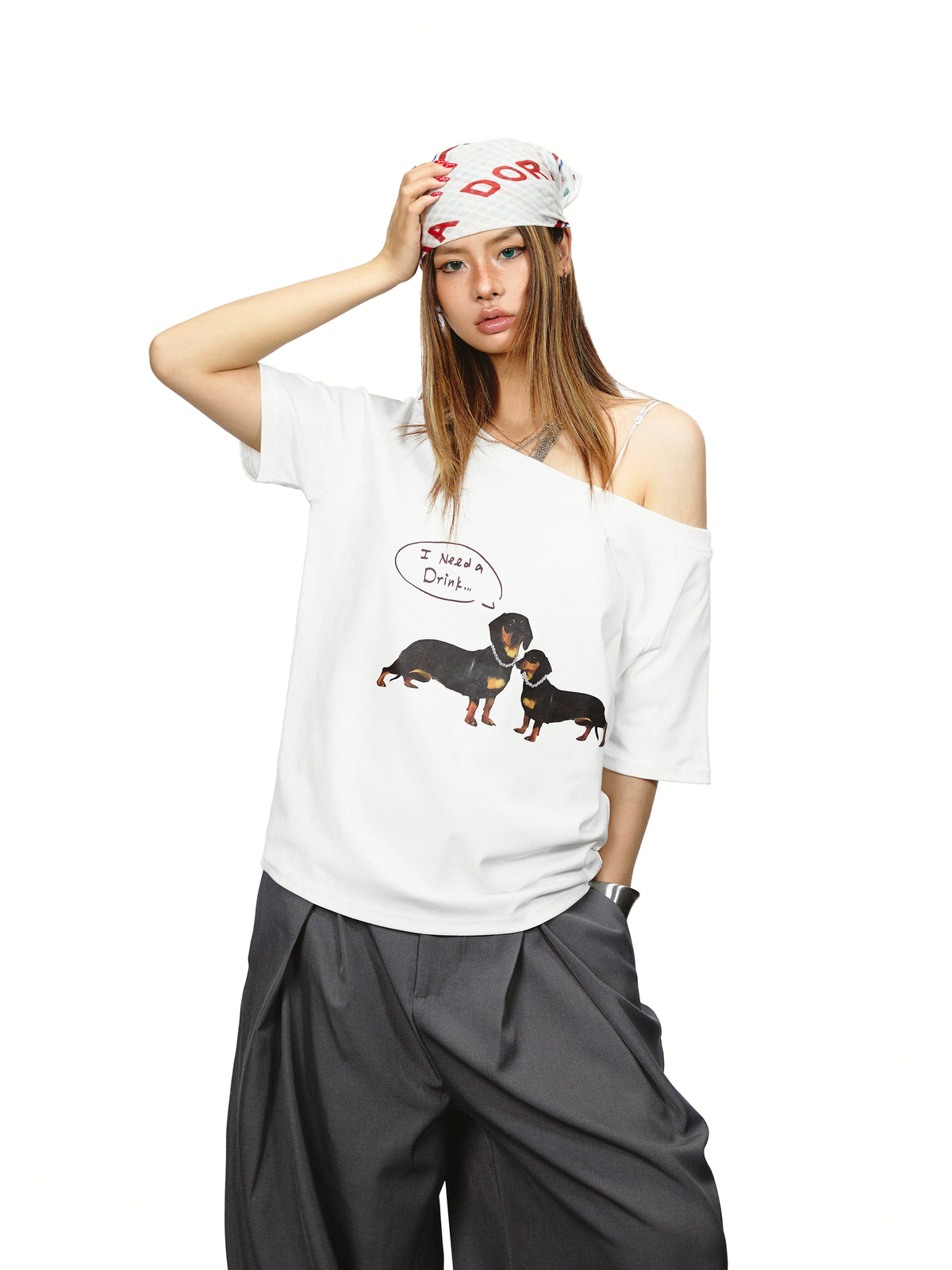 تي شيرت جرافيك بدون أكتاف بتصميم داشهند