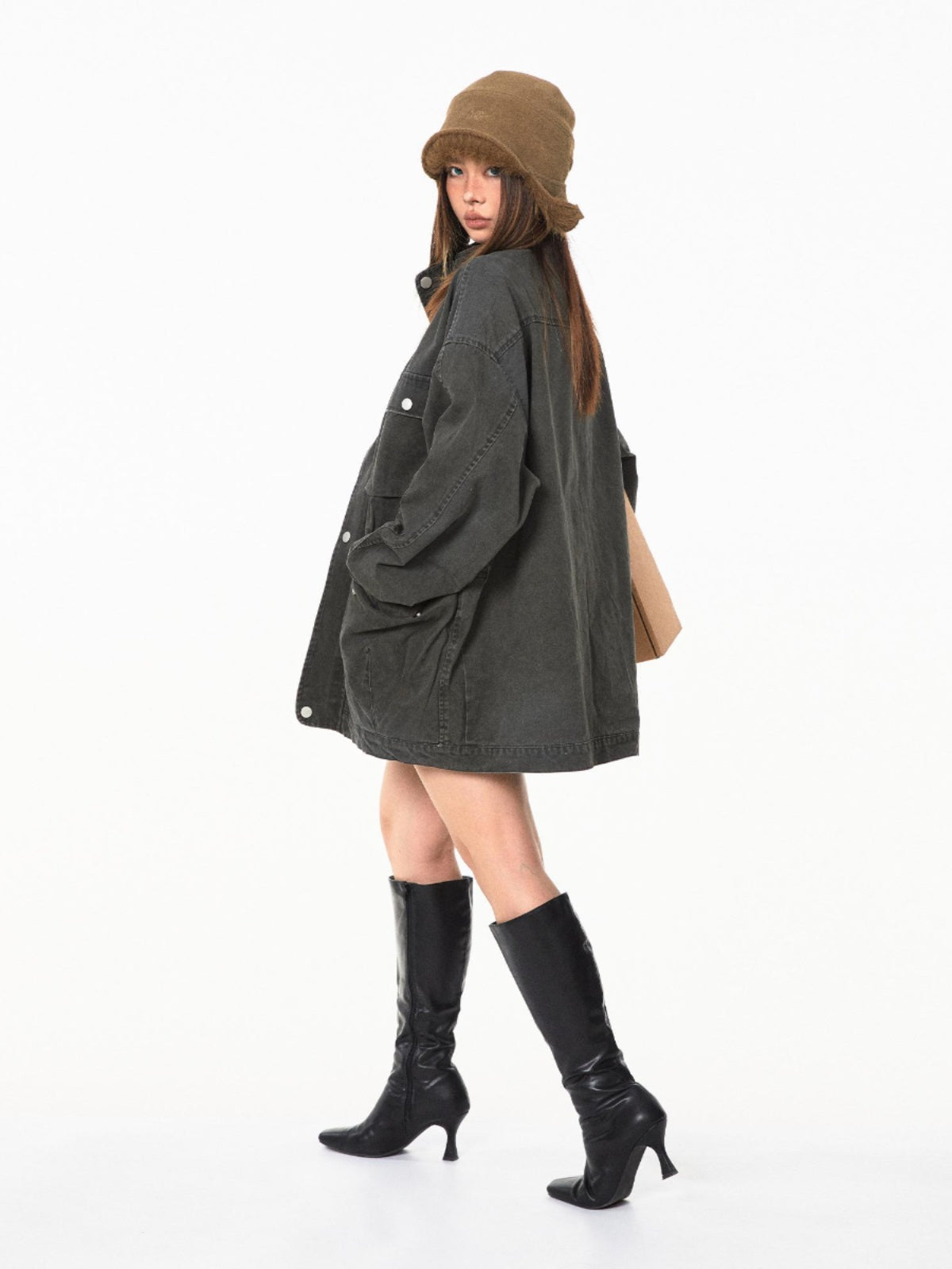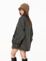 جاكيت عمل من الدنيم الممزق مع جيوب