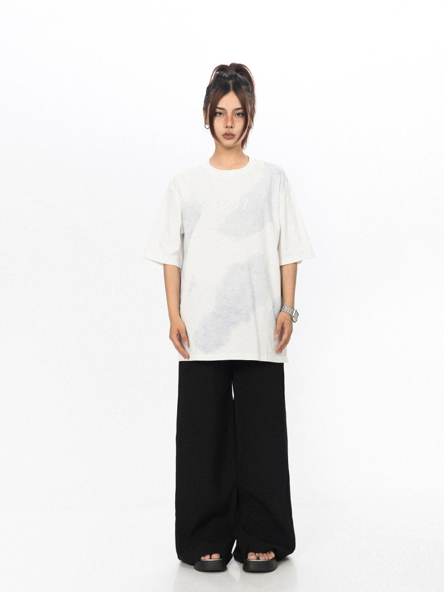 تي شيرت فضفاض بتصميم صبغة مطرزة
