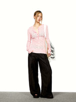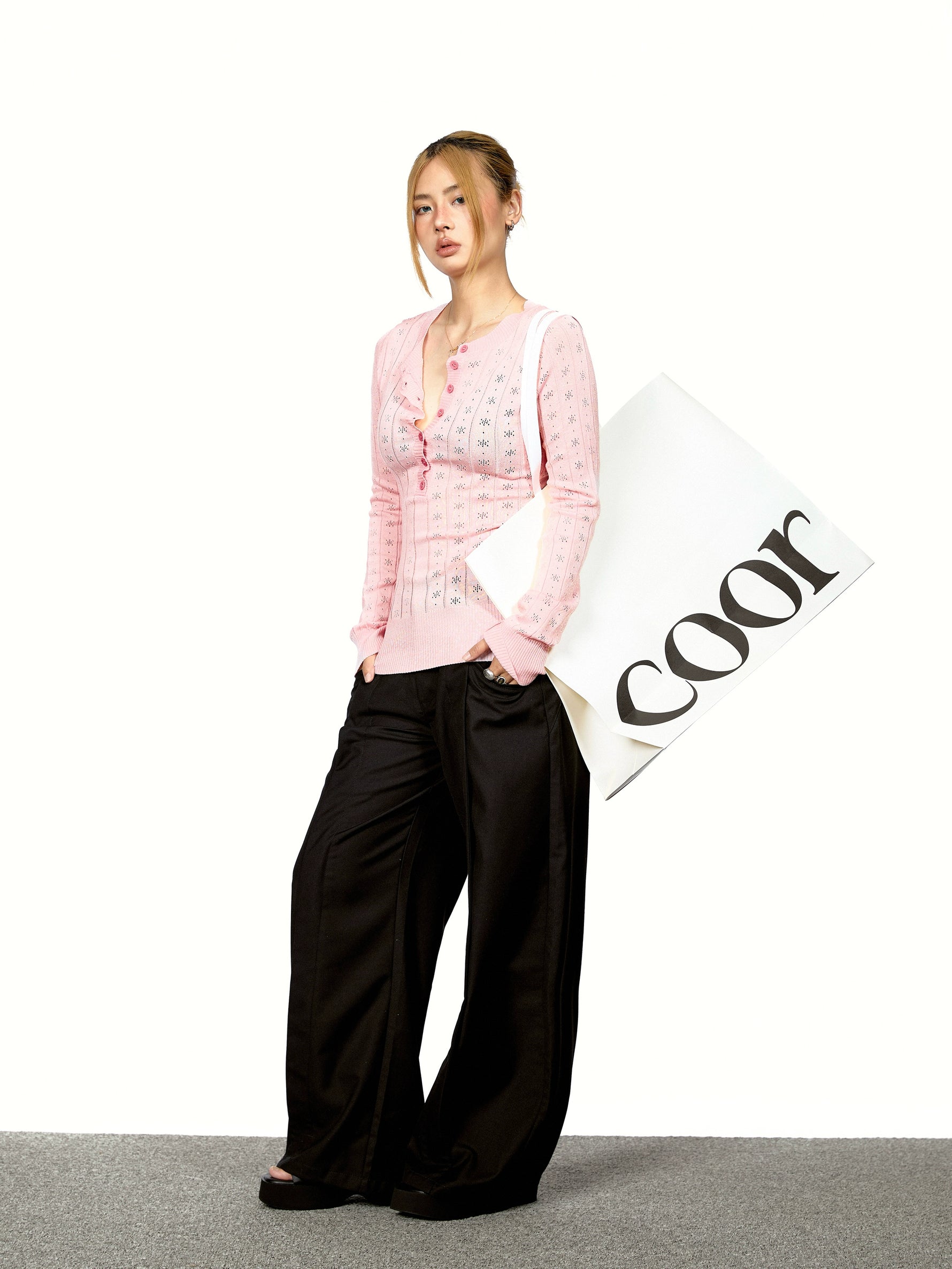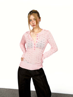بلوزة هينلي طويلة الأكمام محبوكة مجوفة