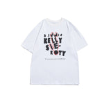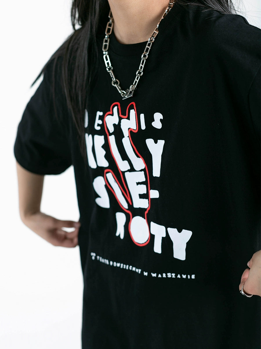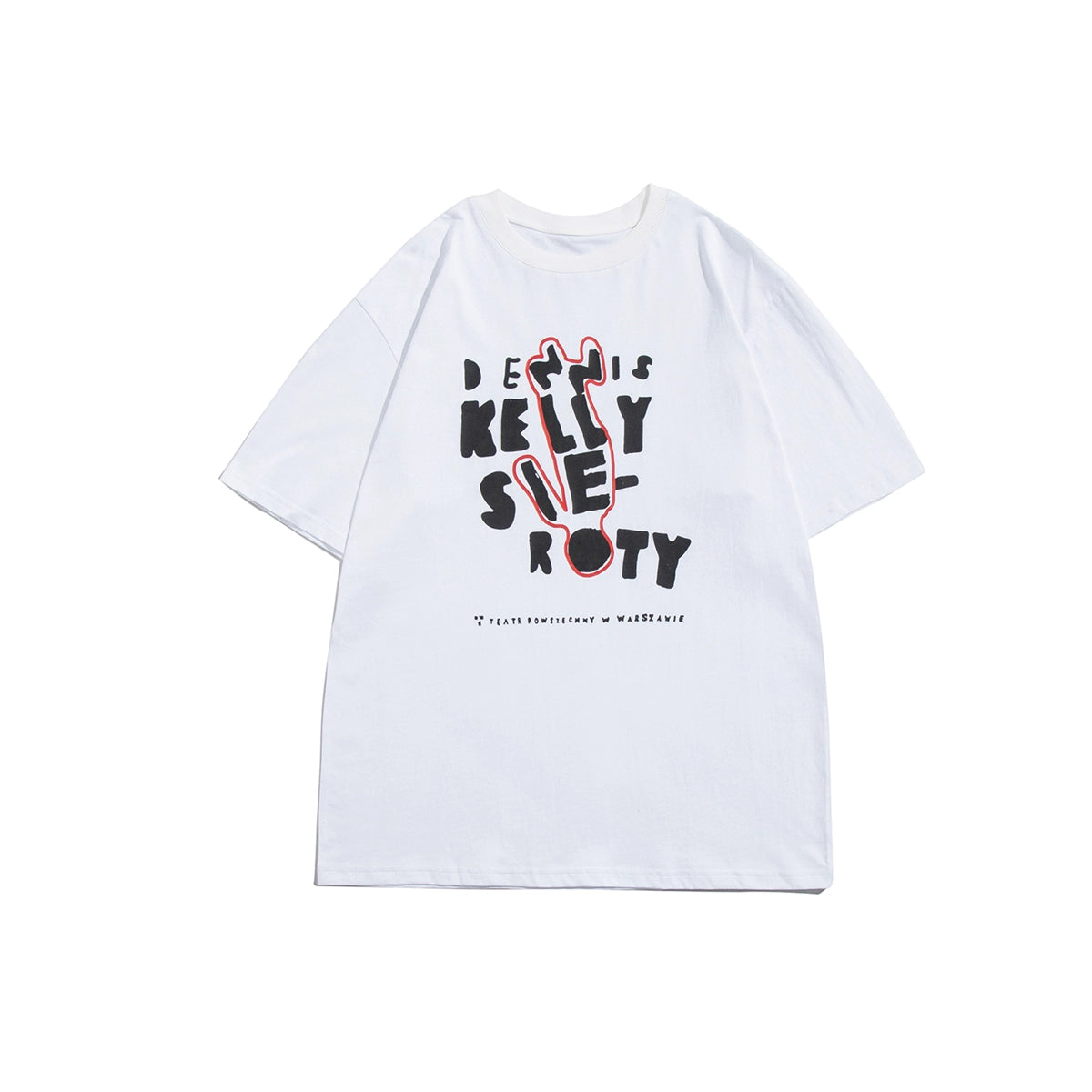 تي شيرت بأكمام قصيرة فضفاضة بطباعة حرفية