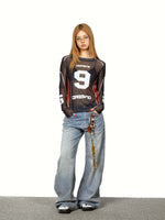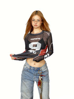 بلوزة تورتلنق بأكمام طويلة وشعار من الشبك