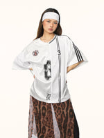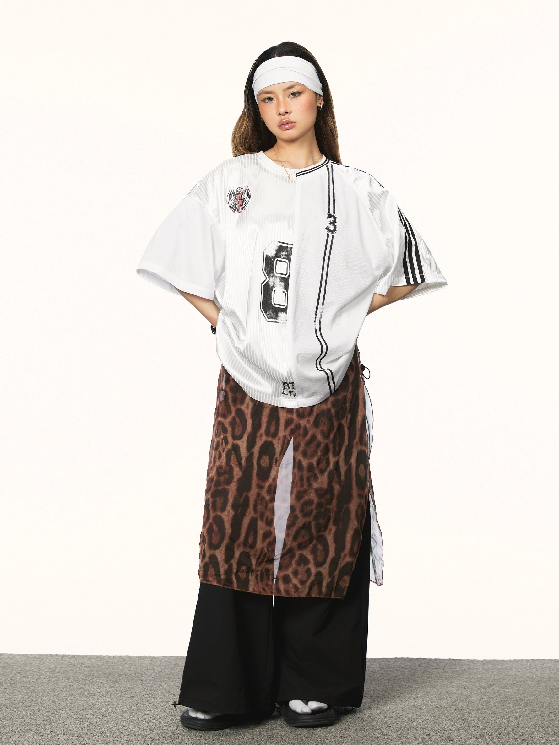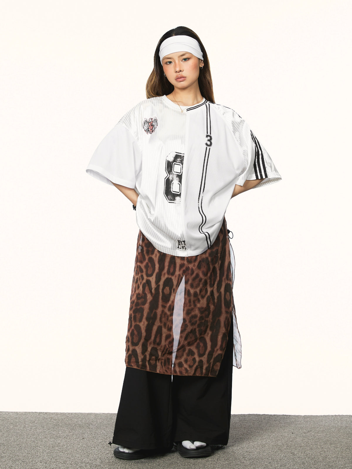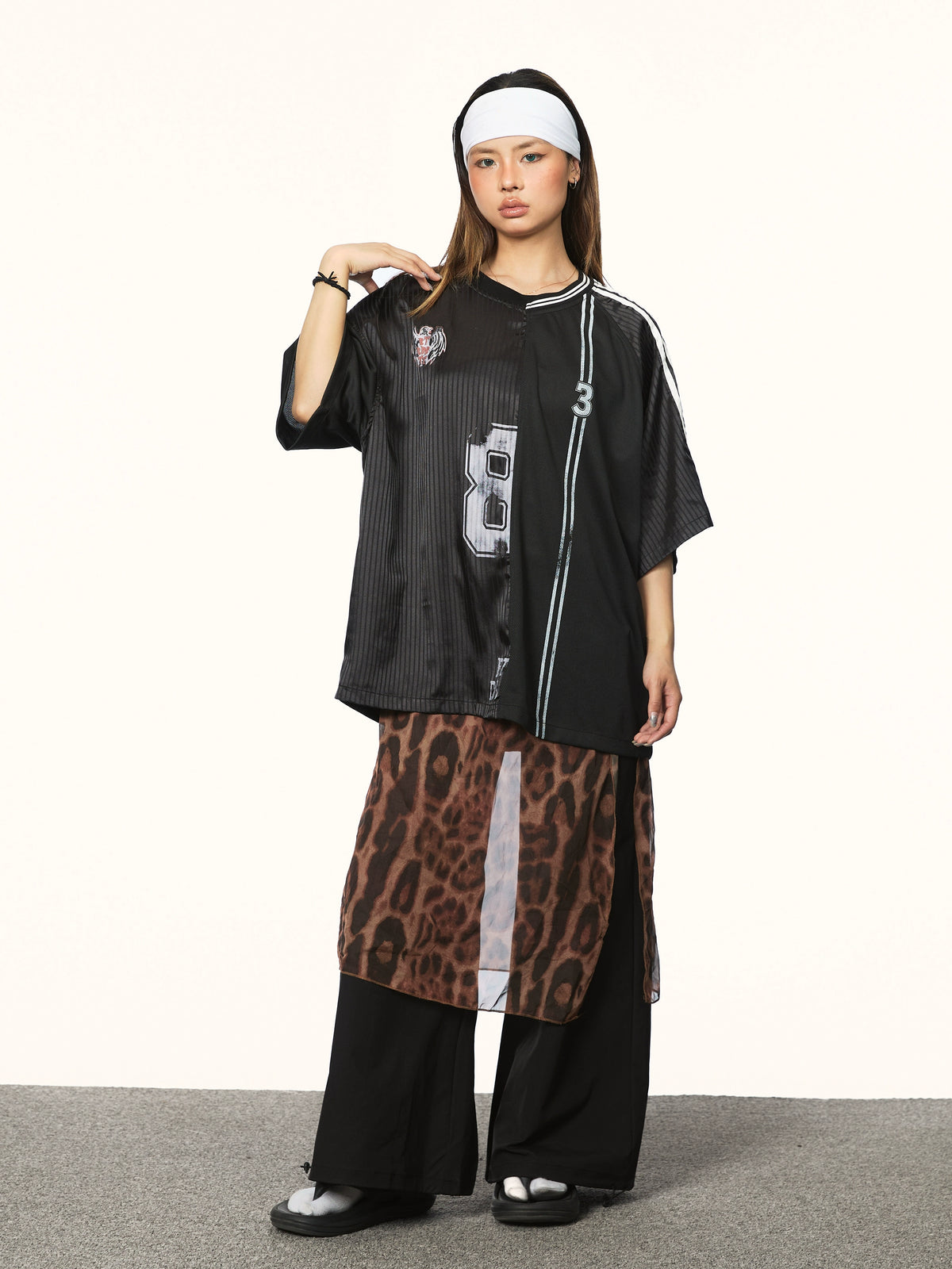 بلوزة جيرسي بفتحة عنق على شكل V مع شرائط شبكية