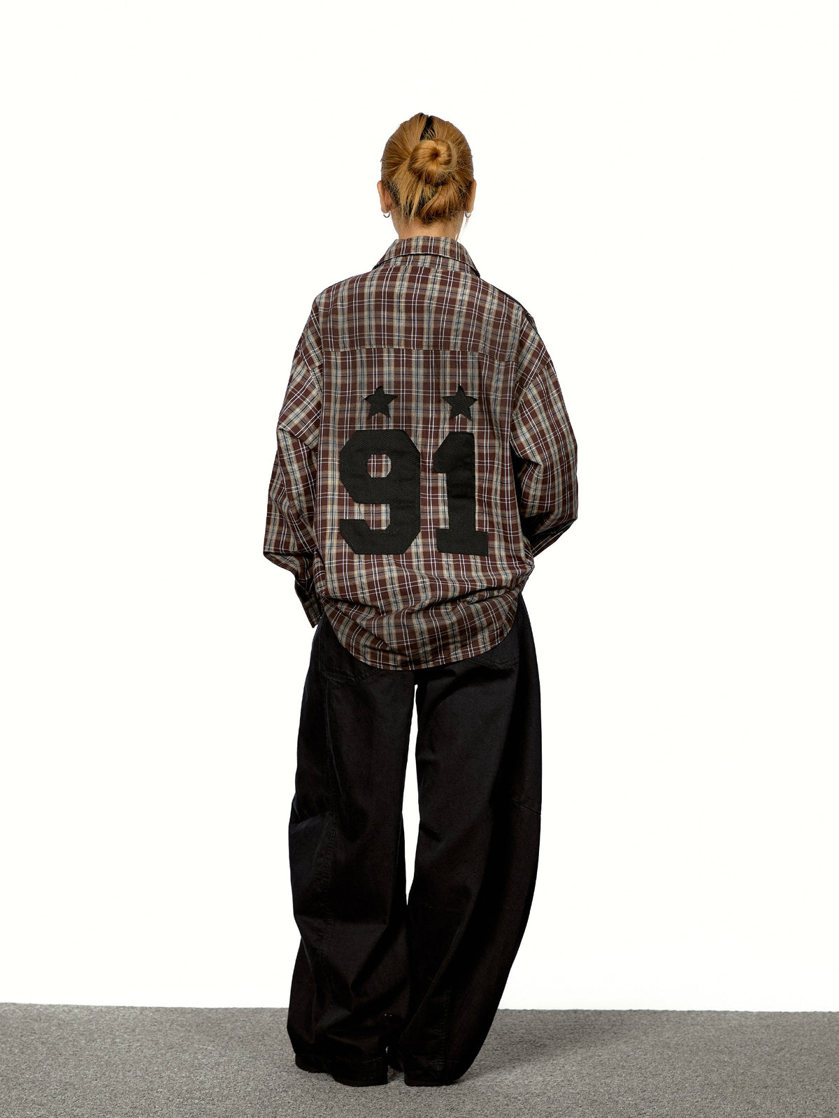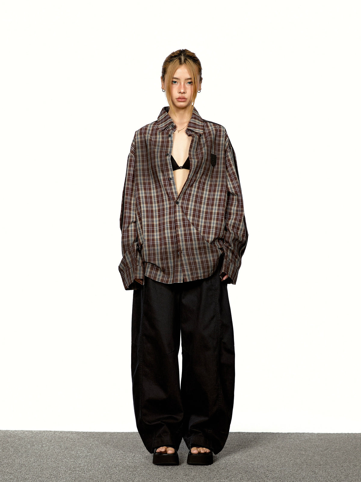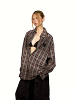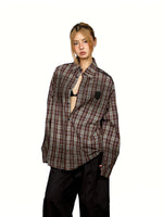قميص فضفاض بتصميم مربعات متداخلة ممزقة