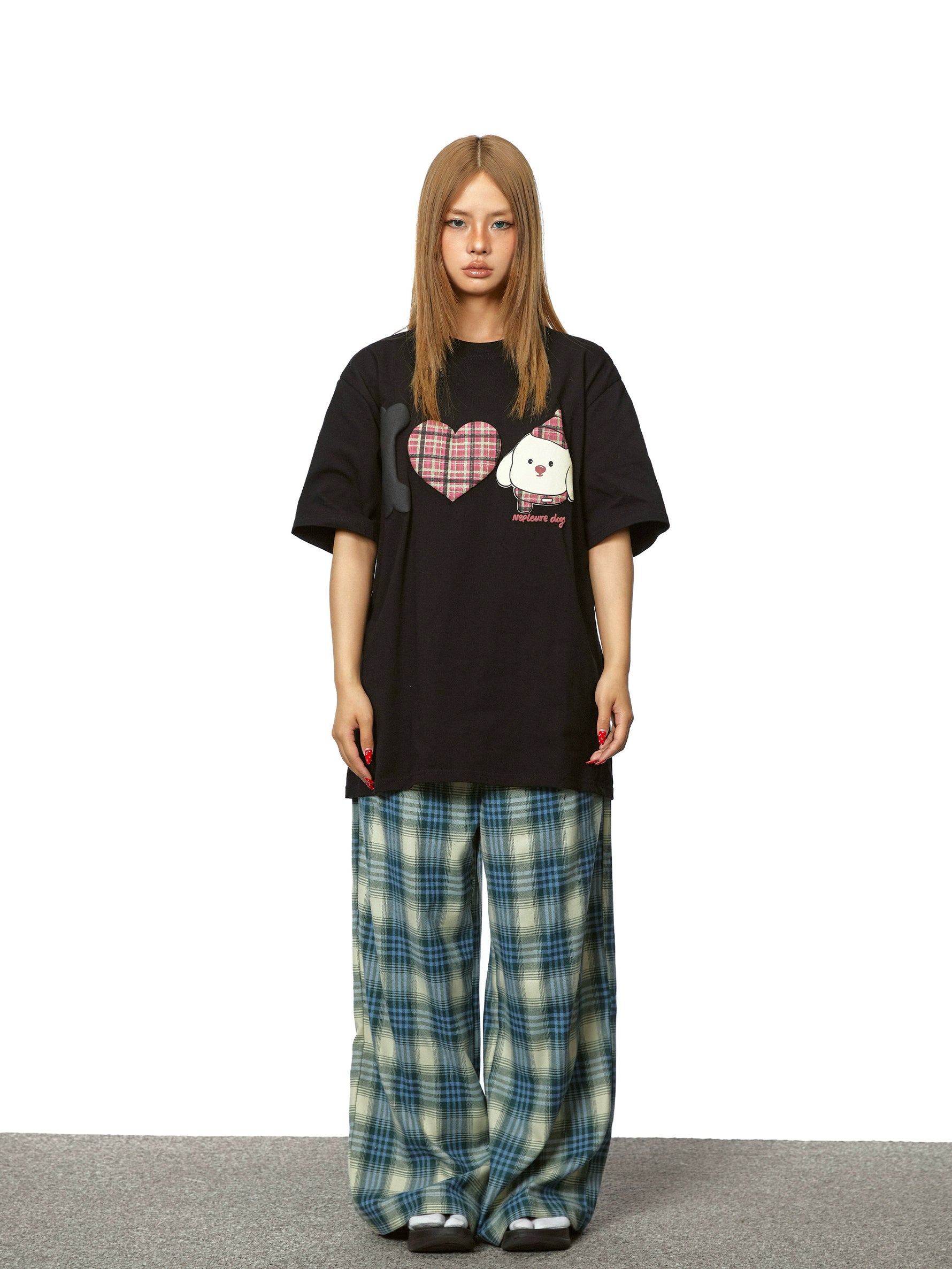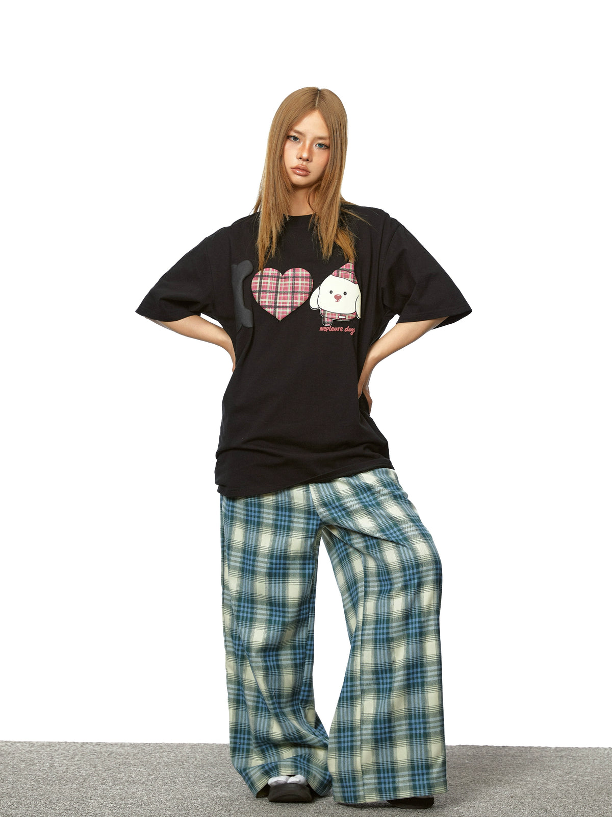 بنطلون واسع مستقيم من قماش الكاروهات