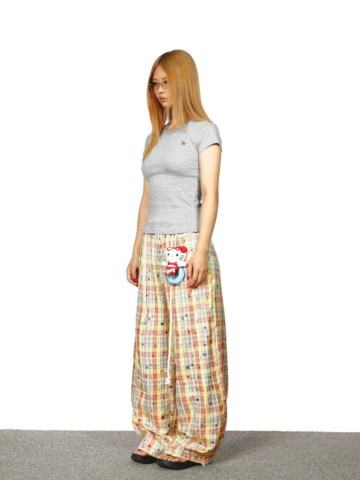 بنطلون واسع الساق بنقشة النجوم والمربعات