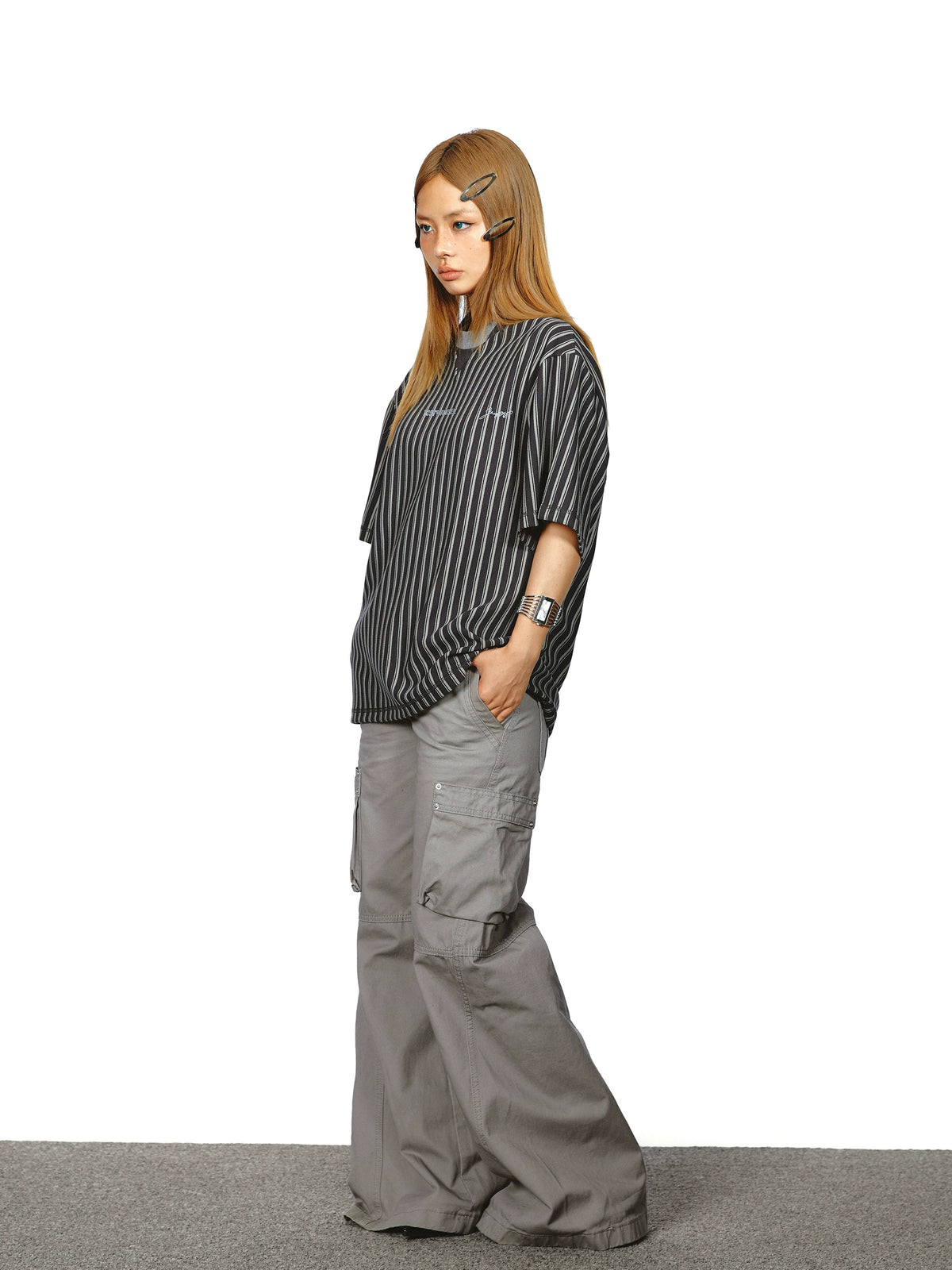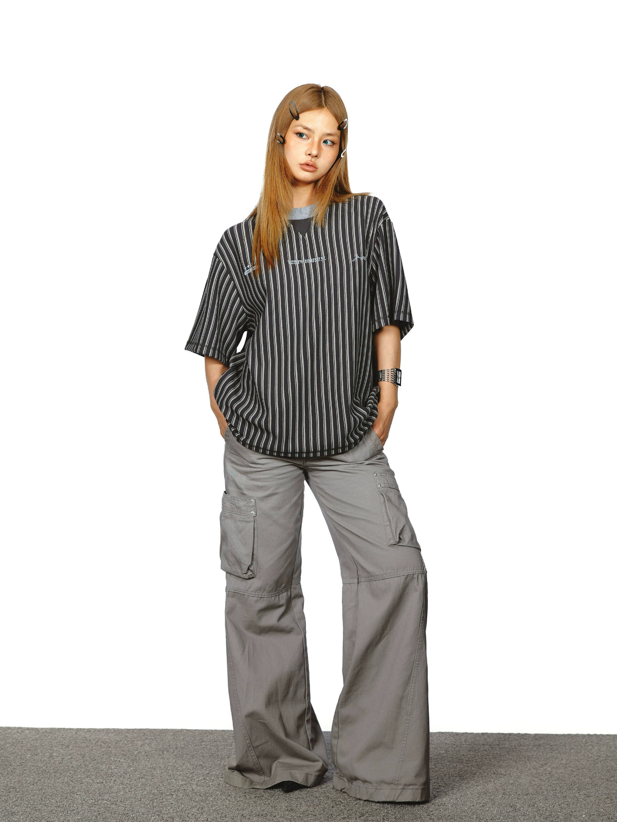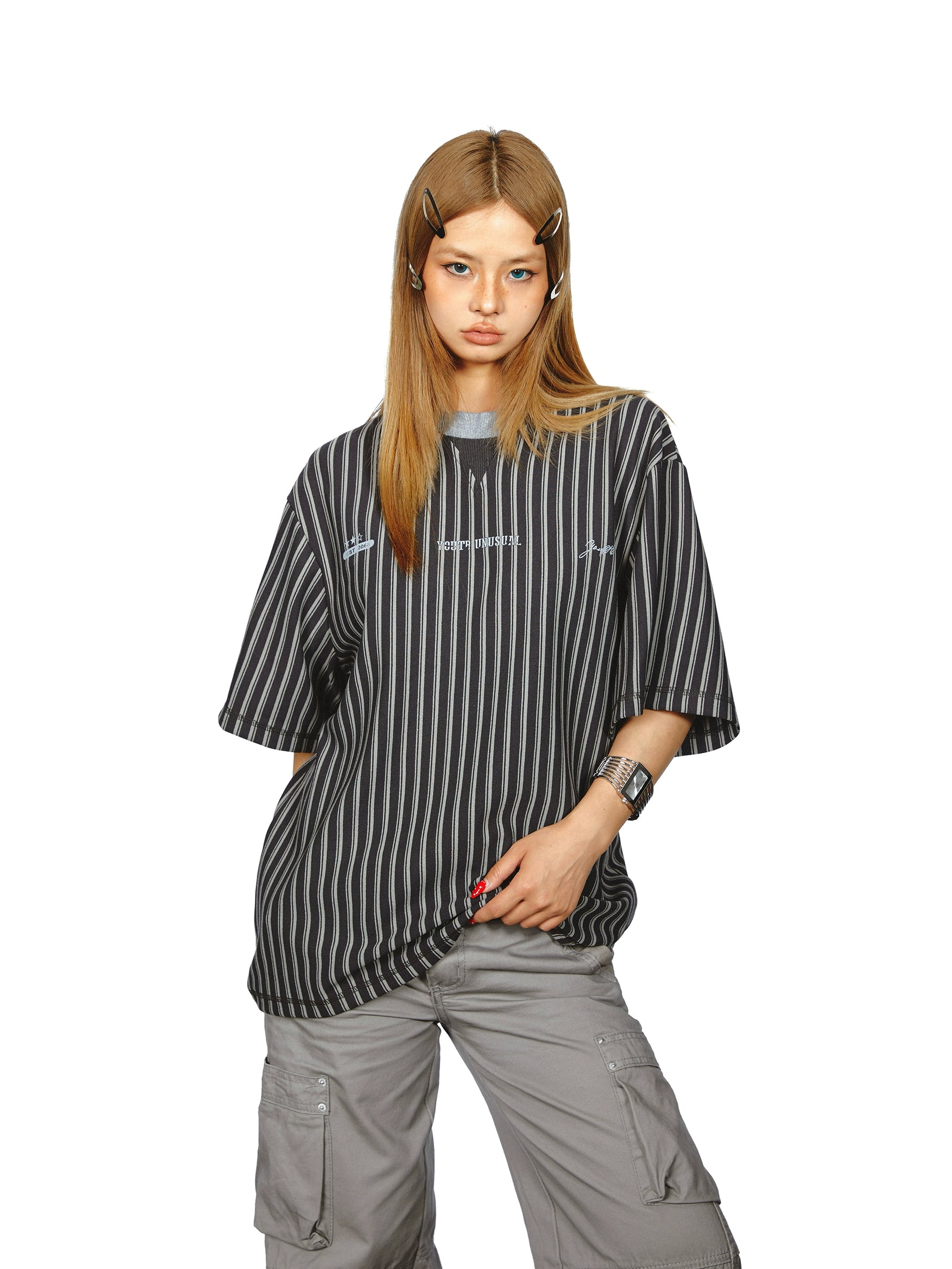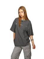 طباعة حرفية بخطوط عمودية على سترة فضفاضة ذات ياقة عالية