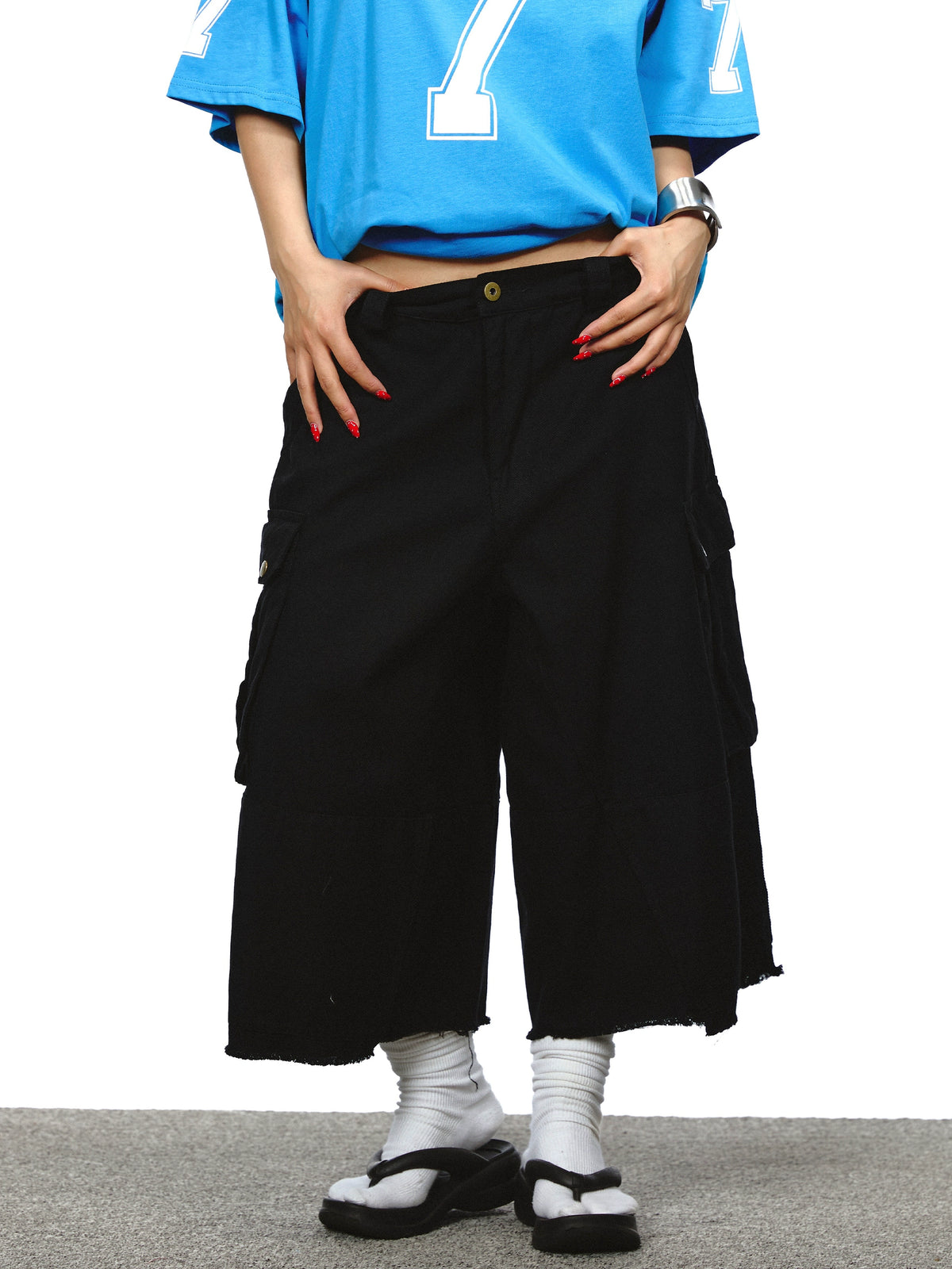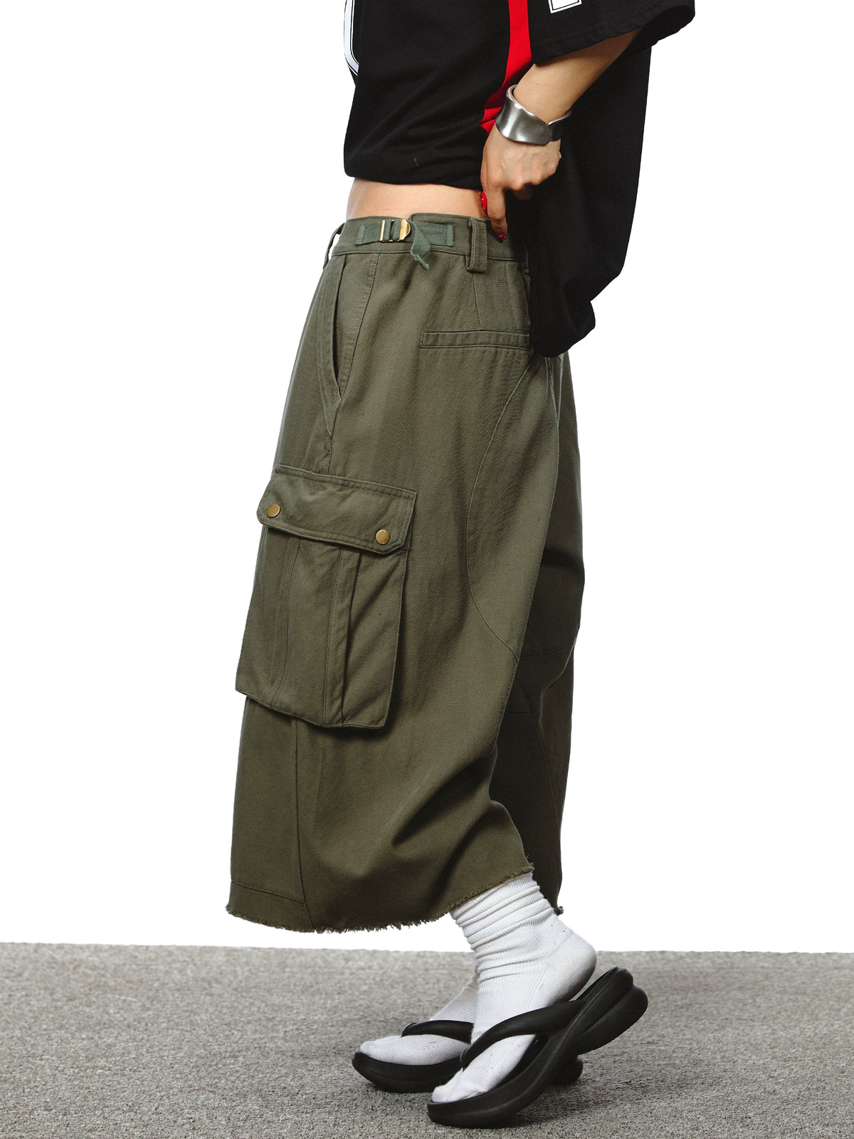 سروال عمل قصير واسع الساق