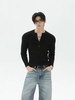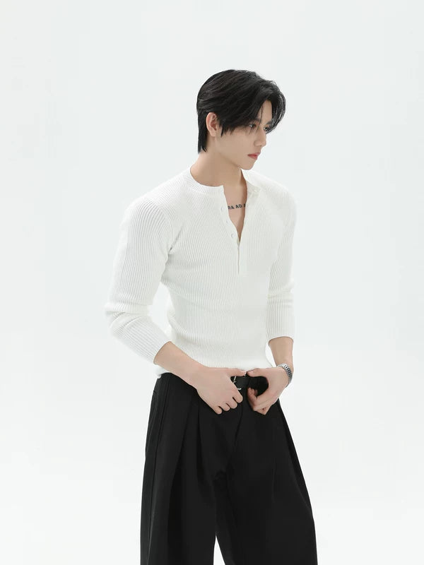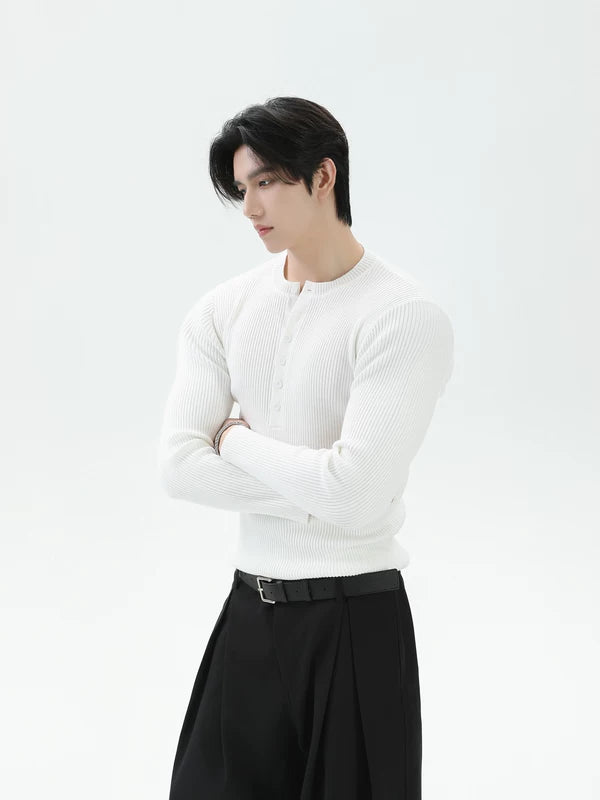 كنزة هينلي محبوكة ضيقة ذات قوام مضلع