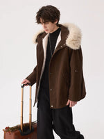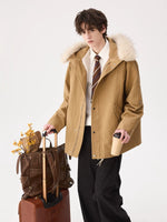 جاكيت شتوي بغطاء رأس مع حواف من الفرو