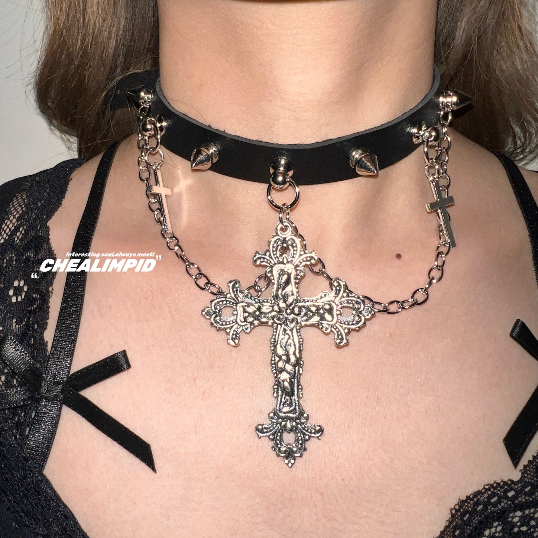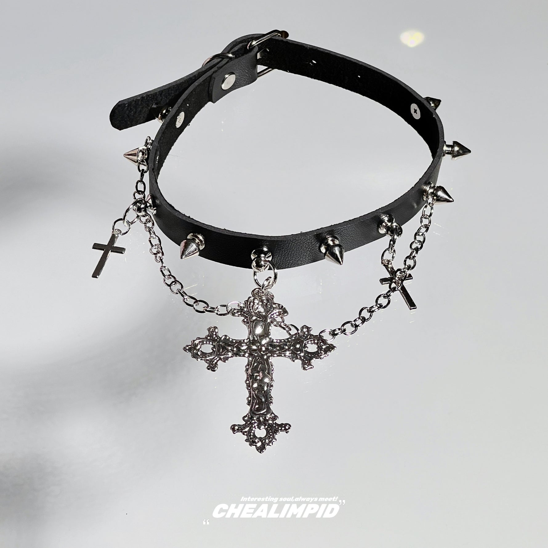 قلادة تشوكر بسلسلة دبابيس متقاطعة على شكل بانك