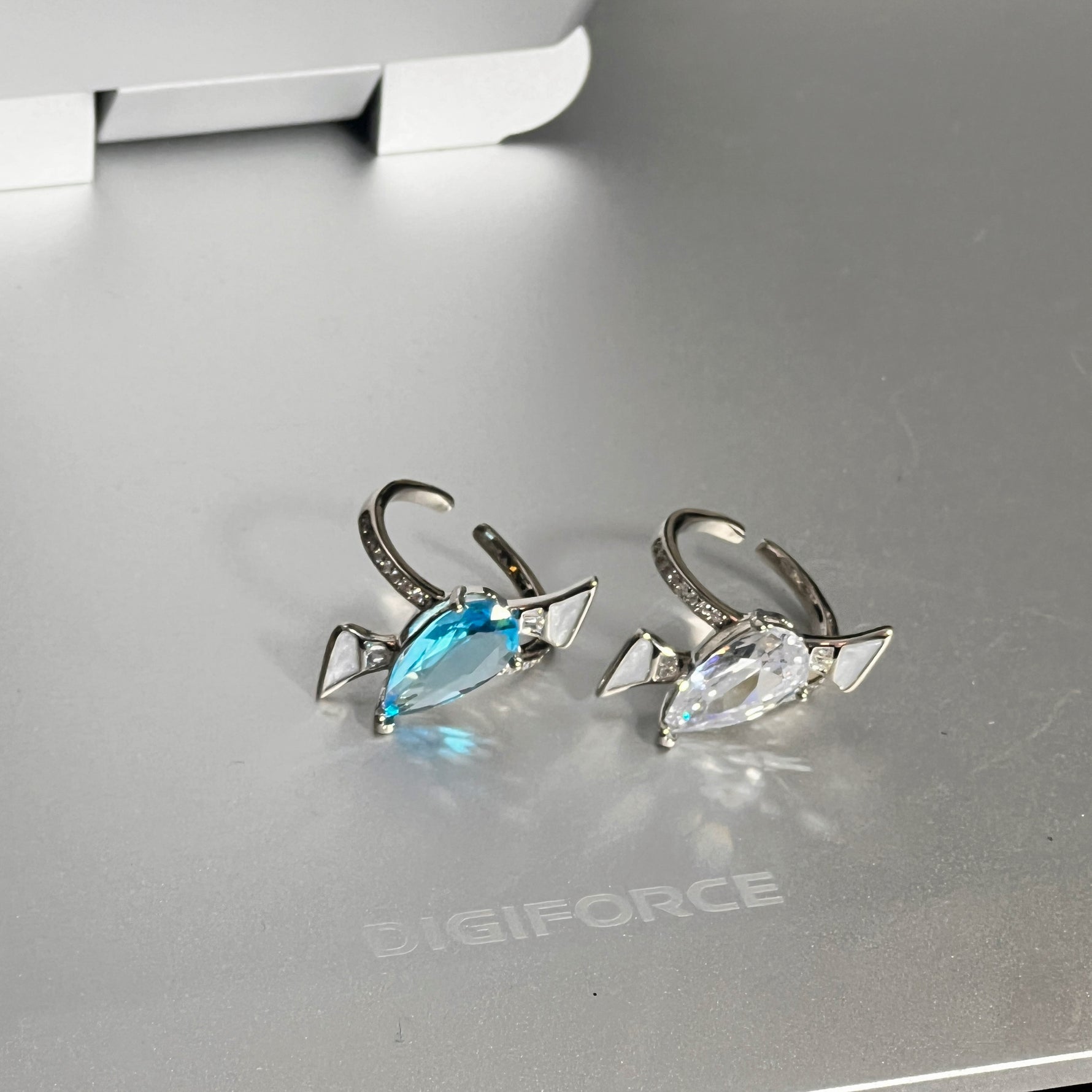 خاتم مفتوح بقطرة ماء بلون الأكوامارين