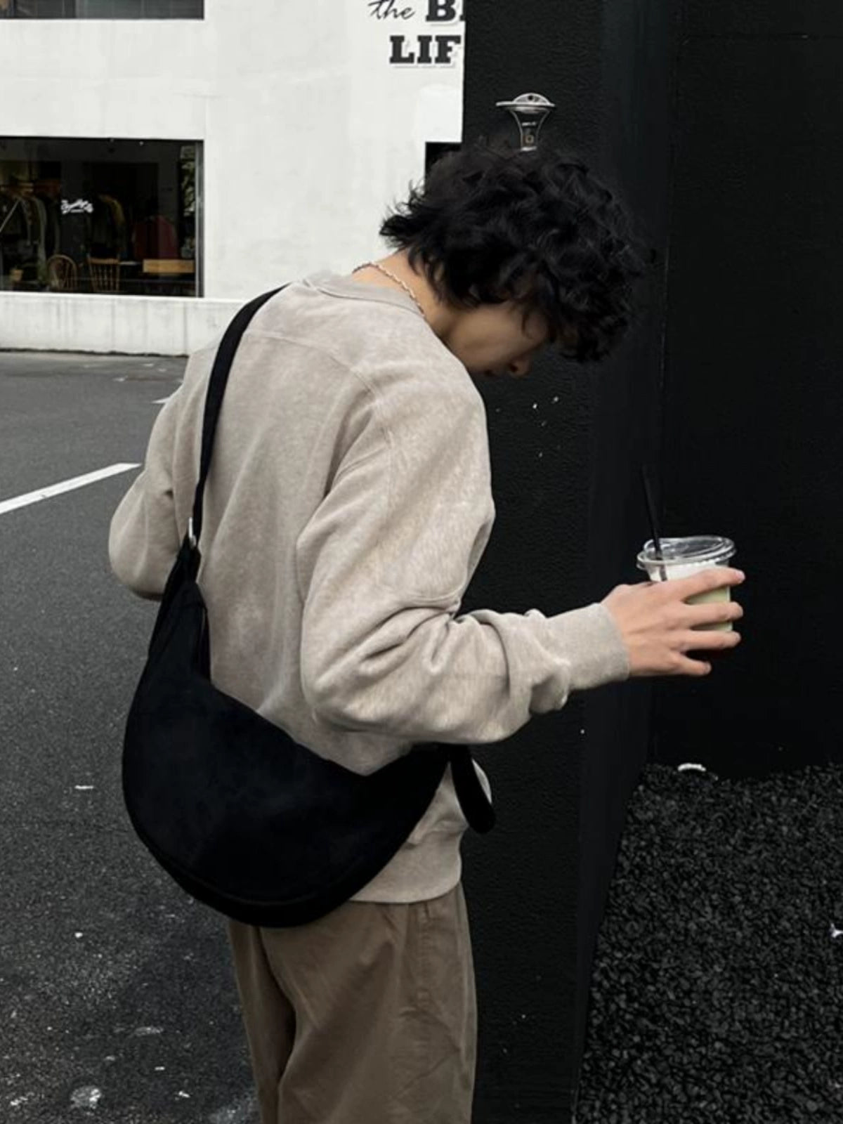 حقيبة كروس بودي بكتف واحد من جلد السويد الكوري
