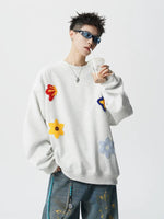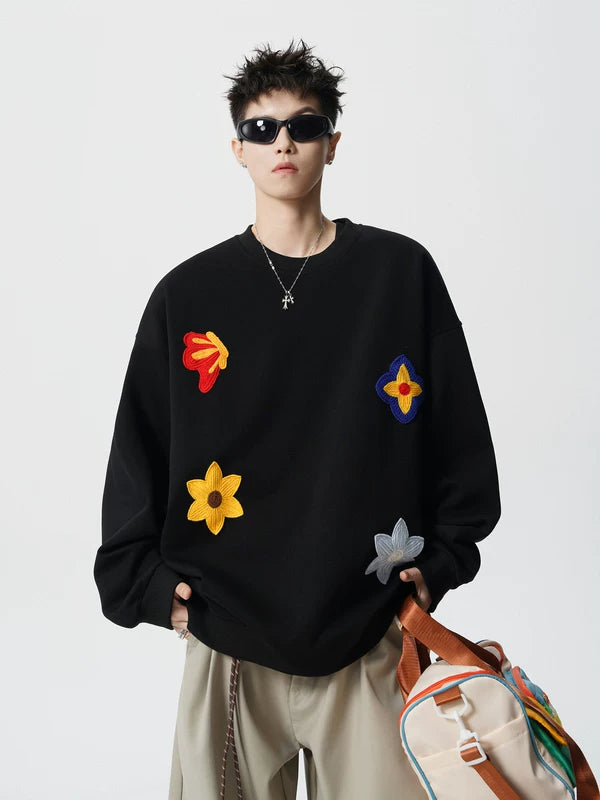 سويت شيرت بقلنسوة واسع مزين بتطريز زهور