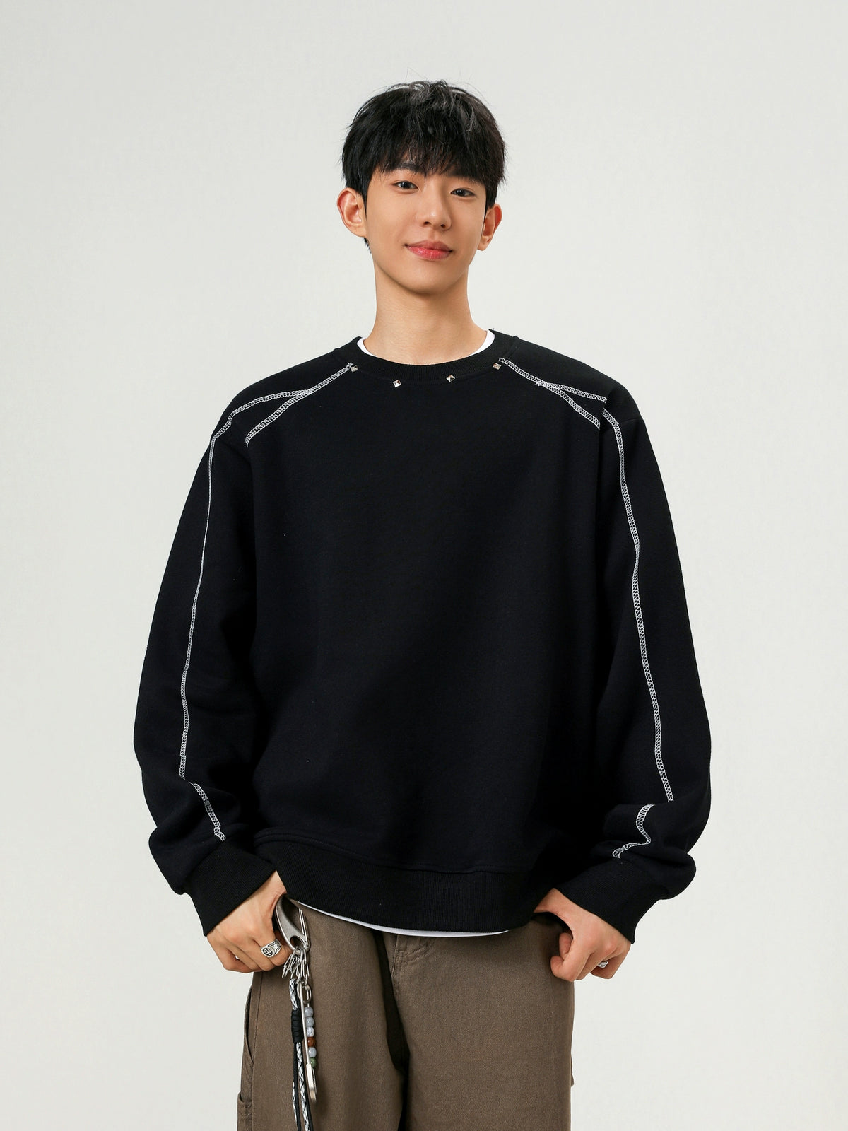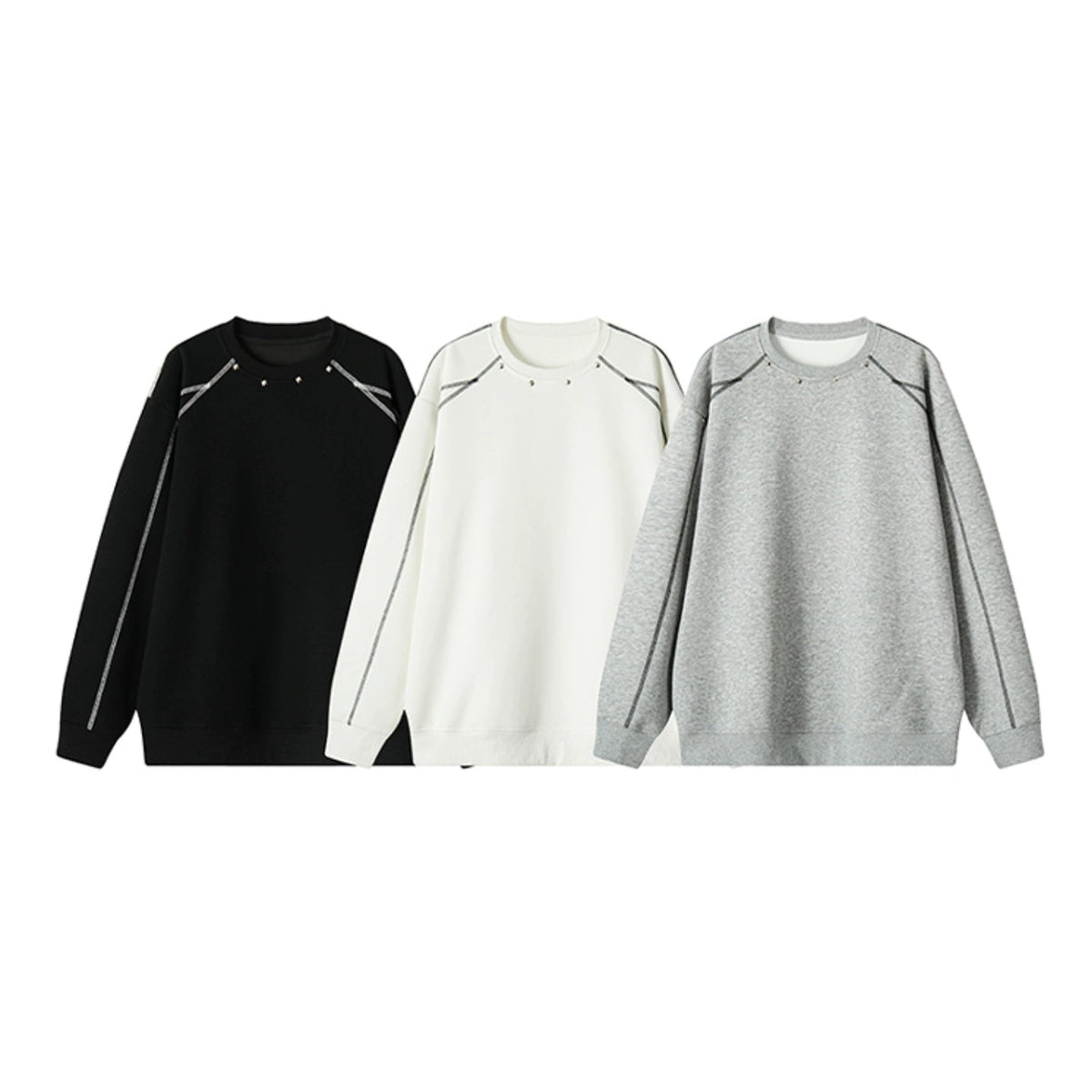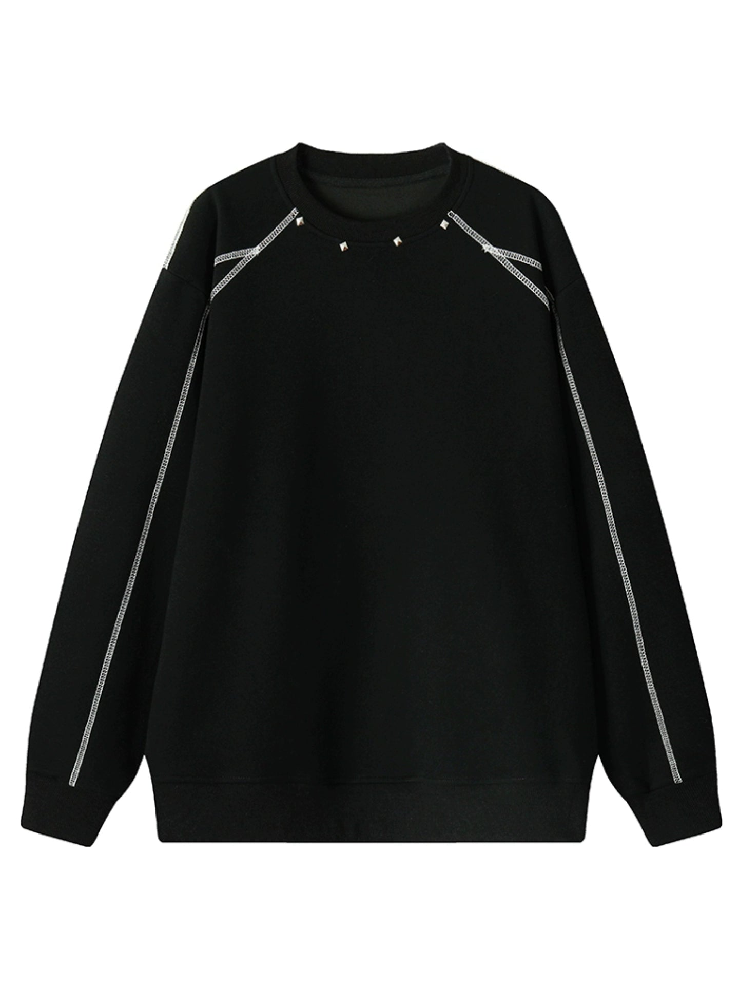 سويت شيرت فضفاض بياقة دائرية مزين بالمسامير