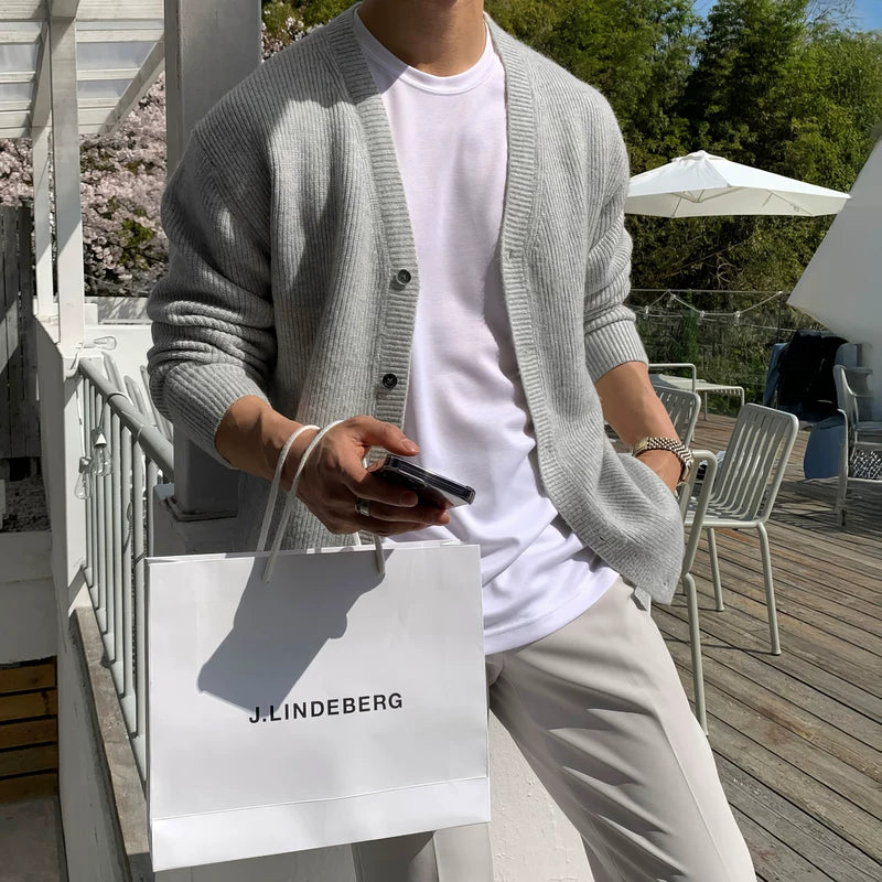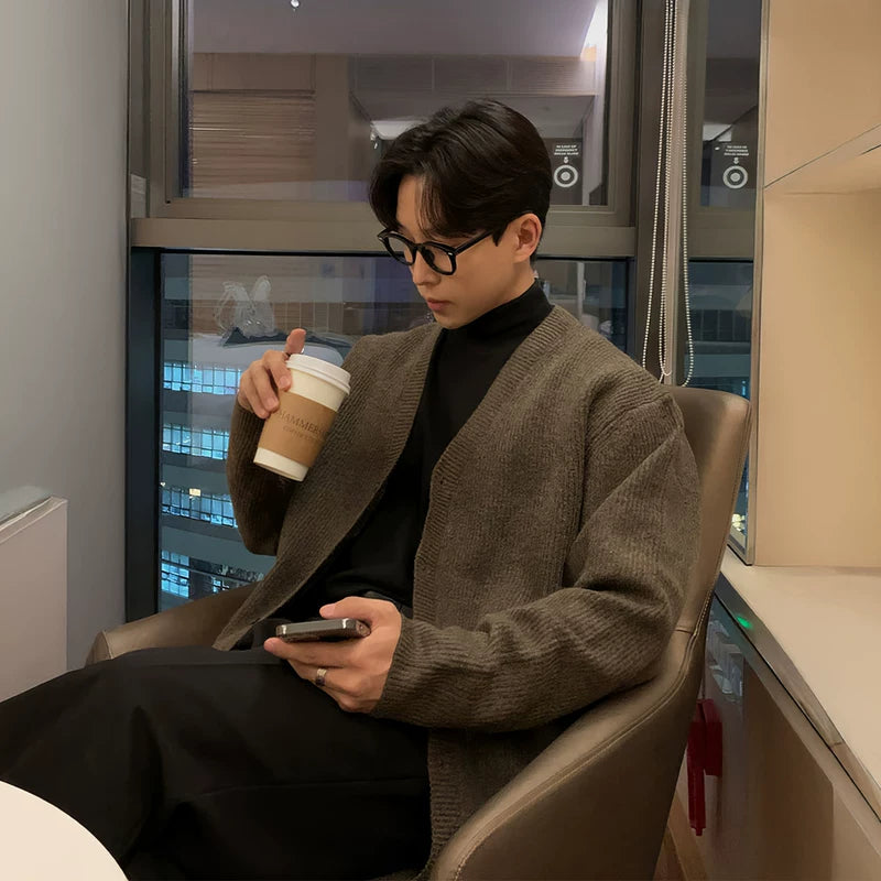 سترة كاردين عادية فضفاضة محبوكة على شكل حرف V