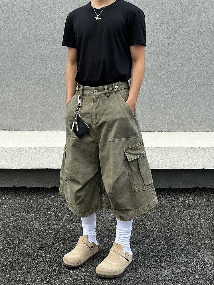 سروال كارجو قصير فضفاض متعدد الجيوب