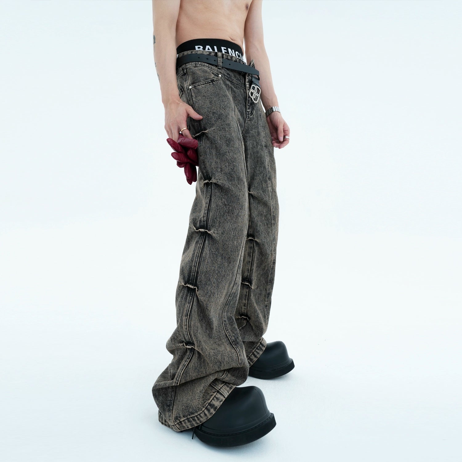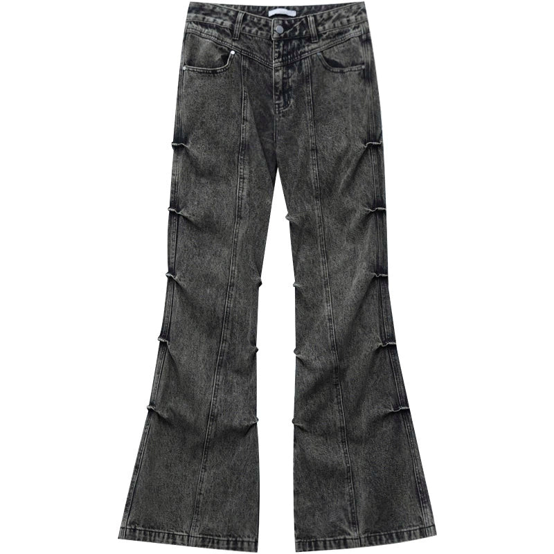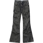 Pleated Flared Leg Retro Style Jeans Pants