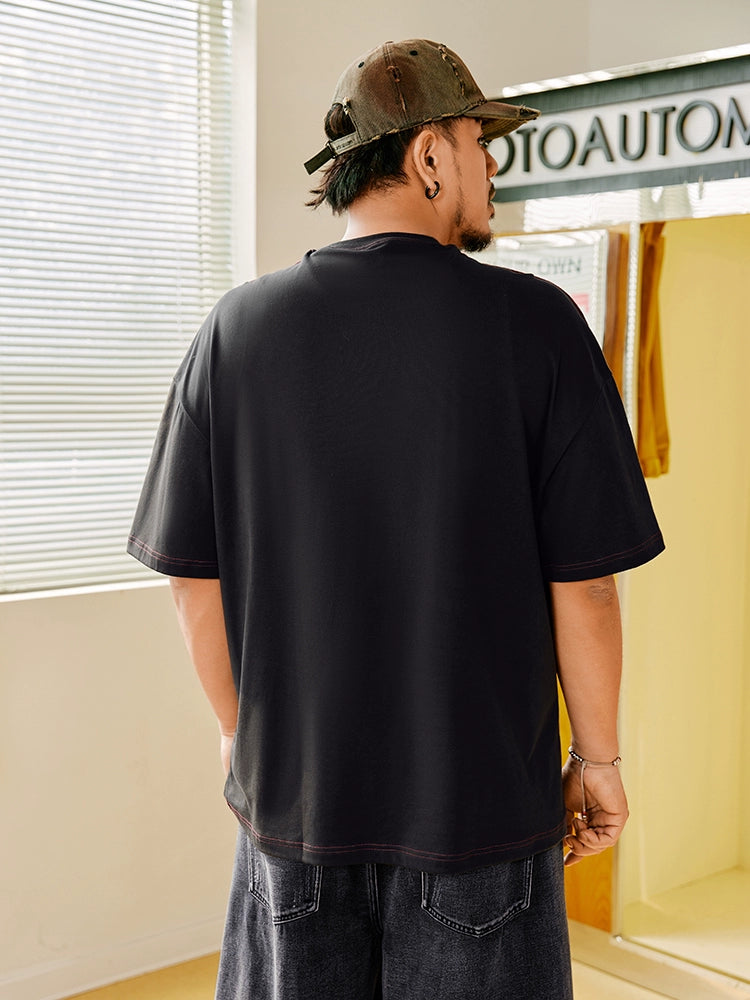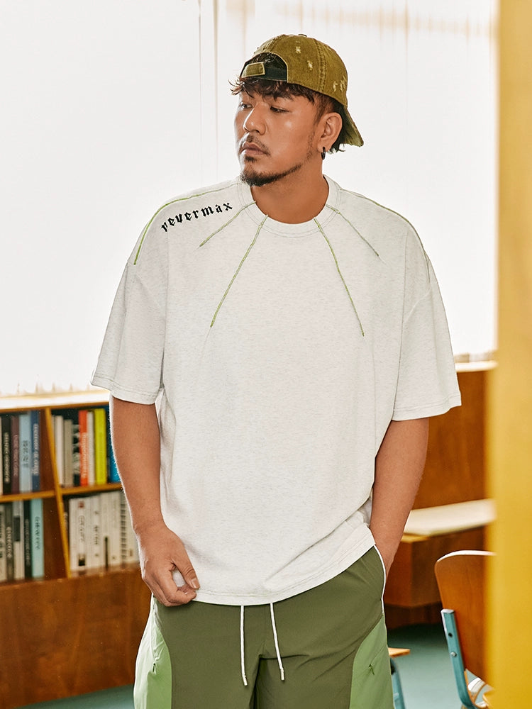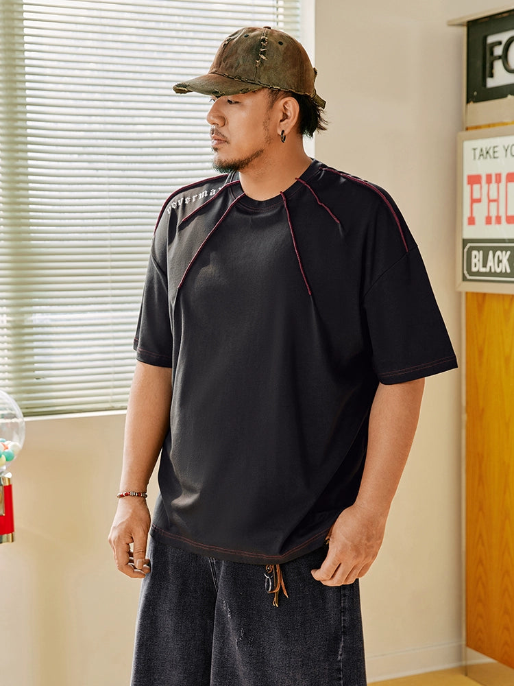 تي شيرت مضاد للبكتيريا بحجم كبير مع خياطة متباينة
