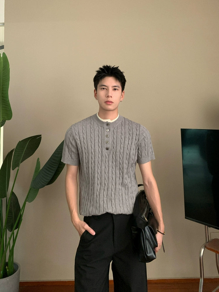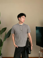 سويت شيرت بولو بأزرار وأكمام قصيرة بتصميم حياكة كابل