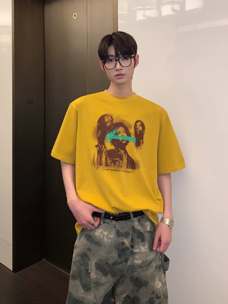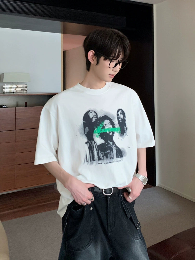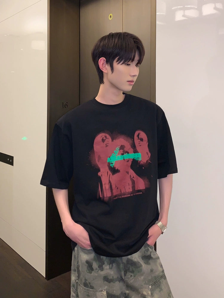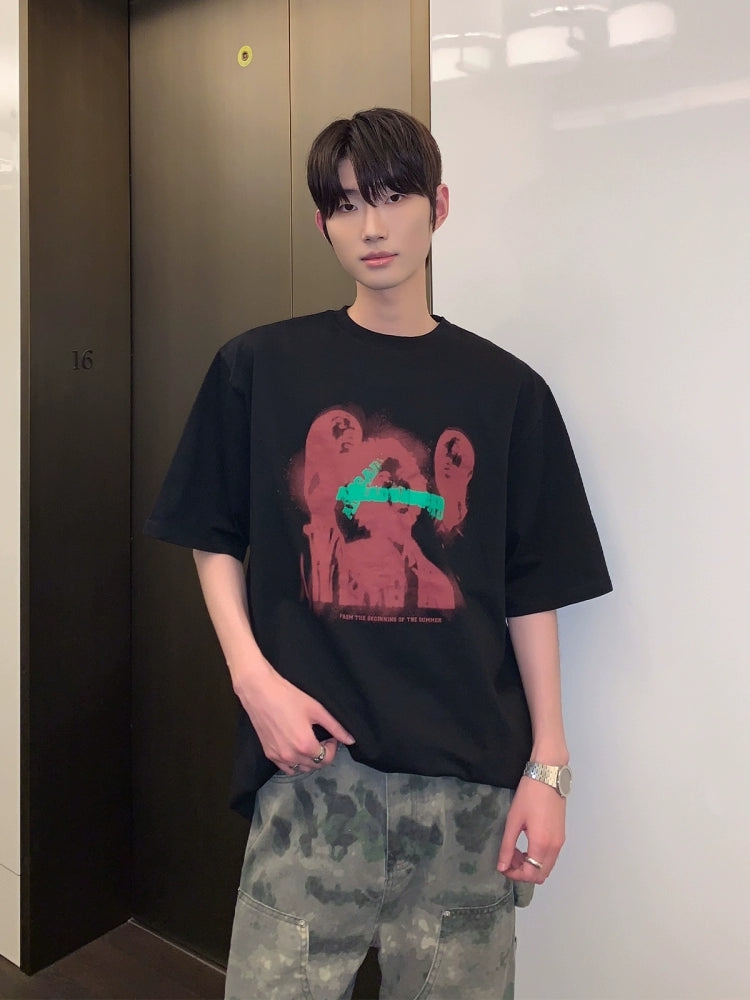 تي شيرت برينت جرافيك بقصة فضفاضة وياقة دائرية