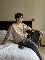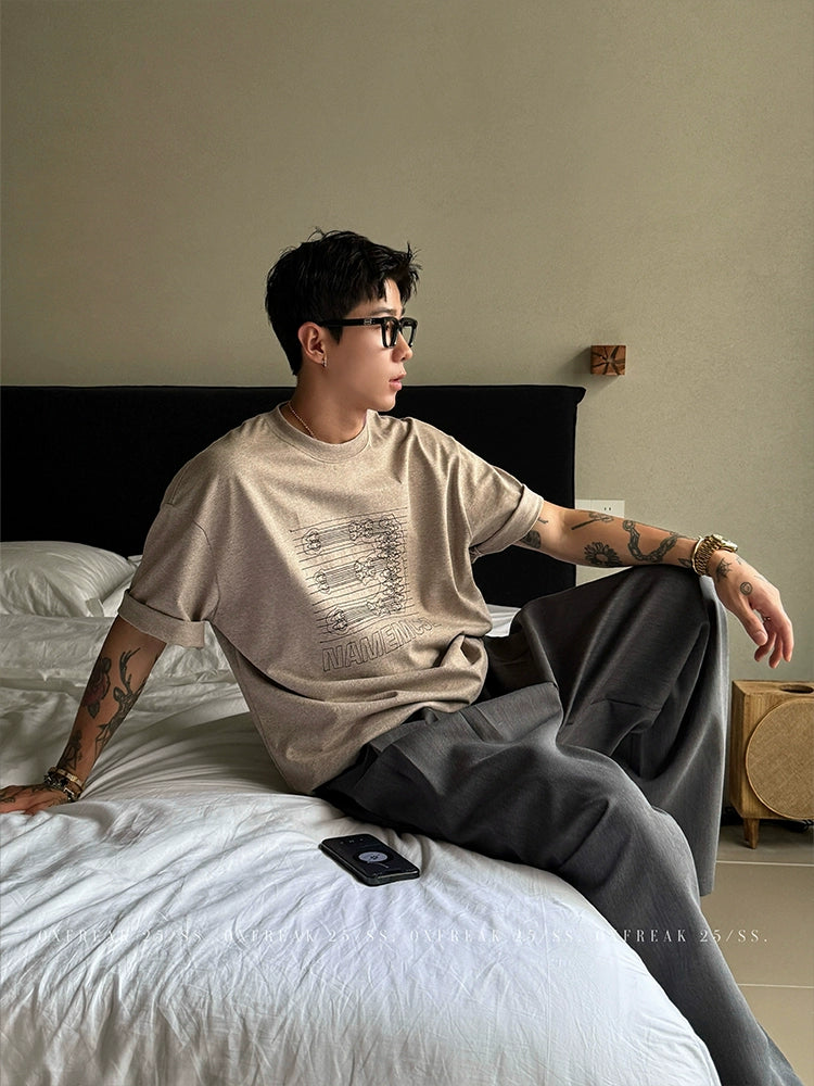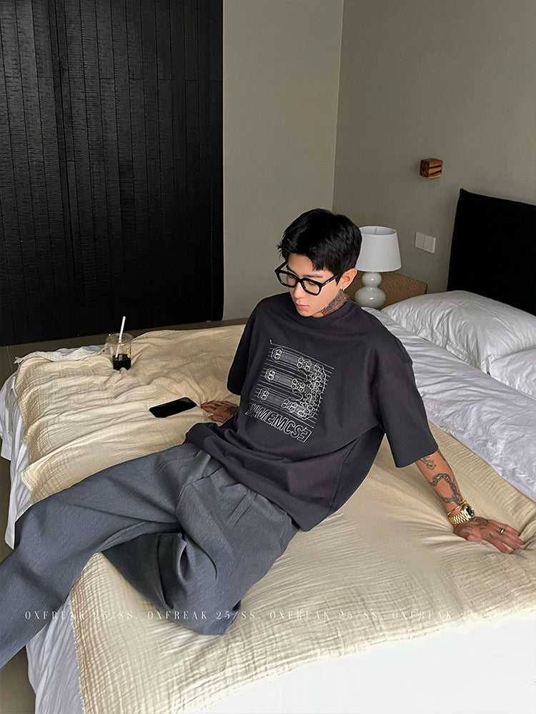 تي شيرت قطن فضفاض بتطريز تاب الجيتار