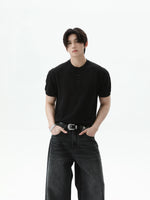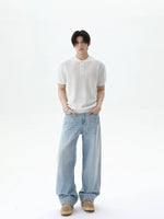 بلوزة قصيرة الأكمام بتصميم ياقة هينلي من قماش تويل